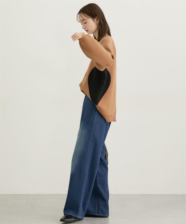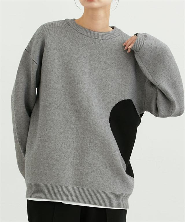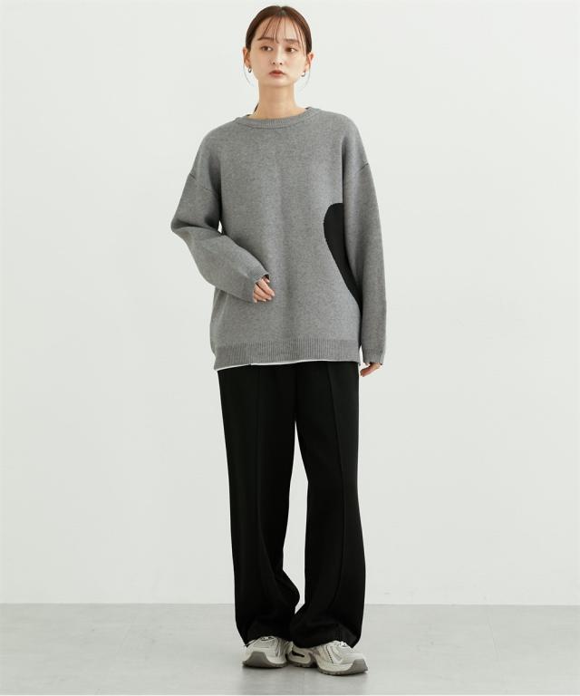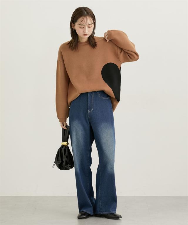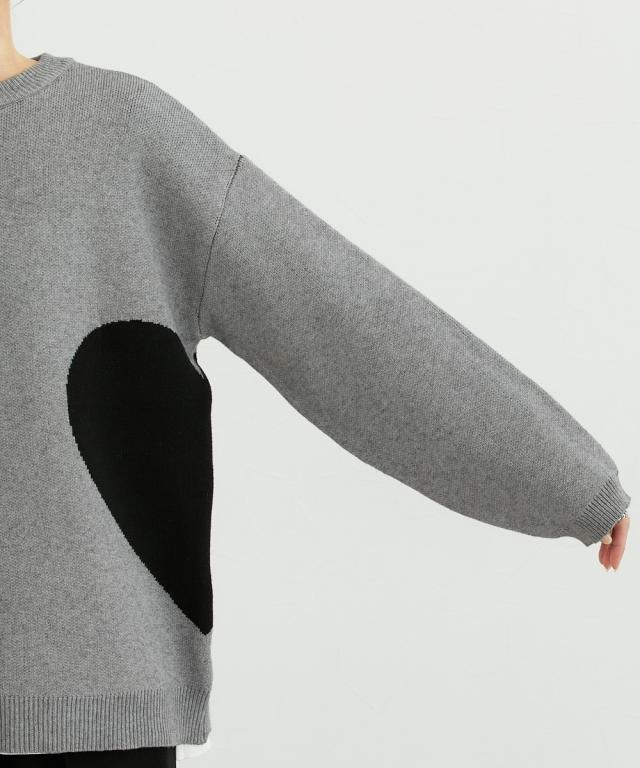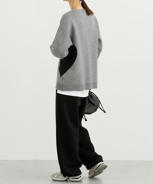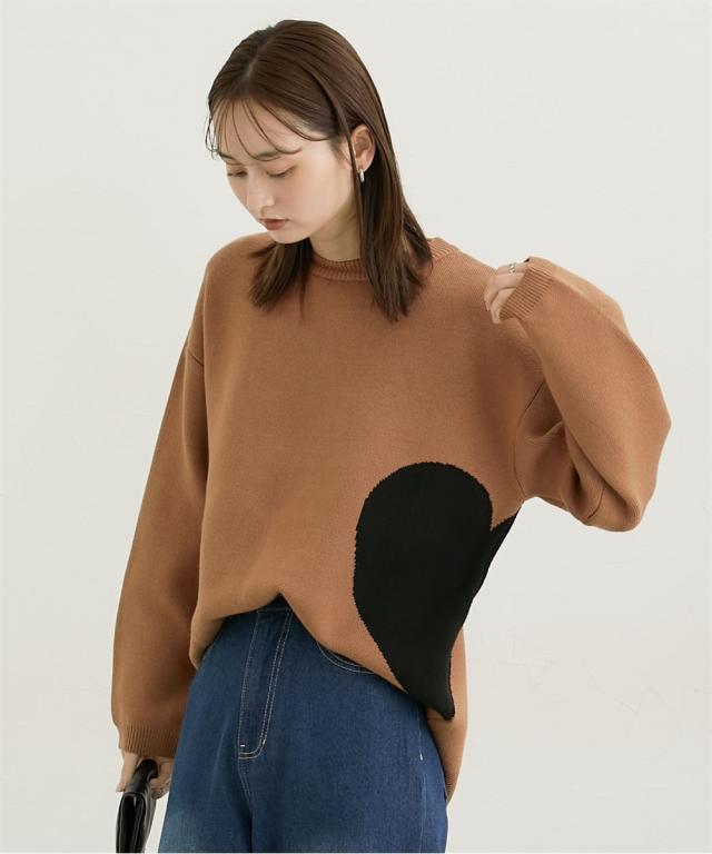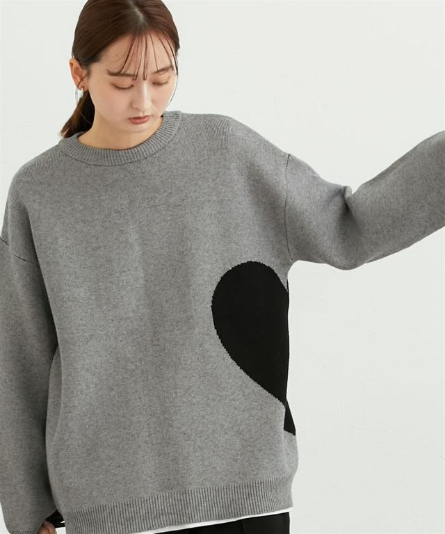 ちらっと見えるハート柄がかわいいスウェットライクニット。ゆるっとしたサイズ感とハート柄の組み合わせが着映えるアイテムです!