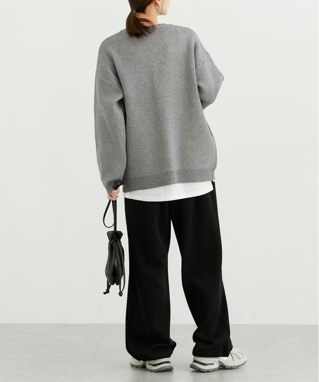 毎年大人気のスウエットライクニット素材で仕立てたニット。柔らかくてもちっとした肌触りが特徴のニットです。ダブルジャガード編で、ほどよい厚みとしっかりした生地感なので秋から冬まで着まわせます。表面に毛羽が少なくしっとりとした高級感のある素材になっています。