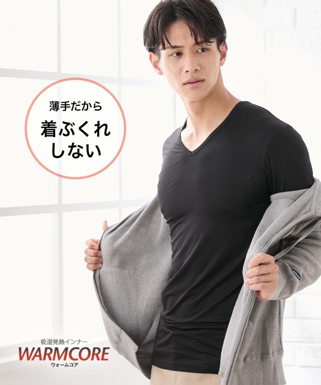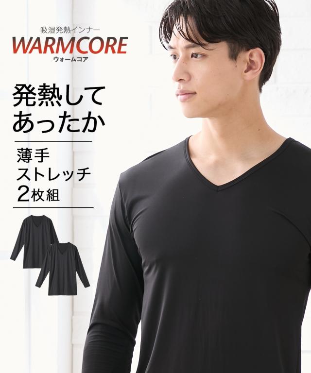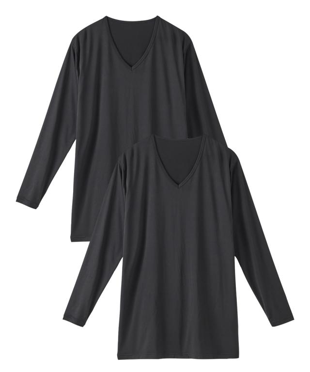インナー シャツ 長袖 メンズ ウォームコア あったか吸湿発熱 薄手 ストレッチ V首 2枚組 冬 男性 肌着 下着 | M/L/LL | ニッセン nissen