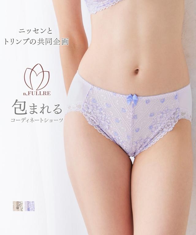 ニッセンでしか買えない「トリンプとニッセンの共同企画」〜美しく包むフルカップは1998 年販売開始以来 お客様の声に向き合い、力ップ部分のとがりや 生地の厚み、質感に対する改良等を重ね、高評価 をいただいているロングセラー商品です〜コーディネートショーツ販売ページです。【こんな方におすすめ】・ブラジャーとショーツはお揃いで着たい・安心感のあるやや深ばき派【商品特徴・機能】・縦横ストレッチでヒップにぴったりフィット・安定のやや深ばき・伸びやかな日本製レースを使用・ニッセンはサイズが豊富(レギュラーからグラマーサイズまで)・トリンプ基準をクリアした工場でのみ 縫製された製品です【開発者コメント】共同企画で誕生した商品は、『トリンプ3基準』をクリアした工場でのみ縫製が実現する製品です。1:製品基準⇒トリンプ認定検査員による検査をすべてクリア2:工場環境⇒労働安全性などを含む多項目の定期的監査にクリア3:安全基準⇒素材などの体に対する有害物質の排除・安全性のチェックにクリア幅広いサイズの方に合うようにA〜Gの豊富なサイズ展開を揃えています。サイズ別のパターンや仕様にこだわり、あなたに合う綺麗な見せ方を提案しています。
