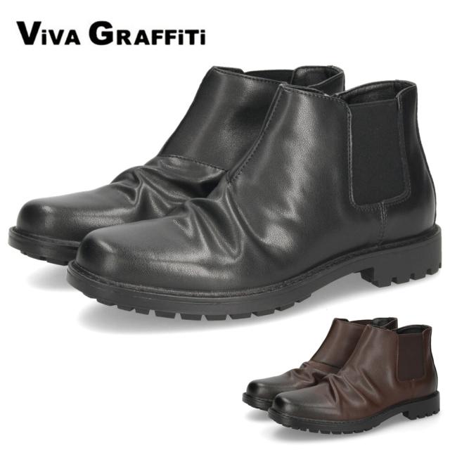 ショートブーツ メンズ 本革 サイドゴアブーツ サイドジップ 黒 レザー カジュアル 革靴 VIVA GRAFFITI ビバグラフィティ 279