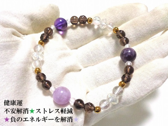 不安解消・ストレス軽減・やすらぎ・心身の不調を根本から解決に導く・強力な癒しパワー・健康運・毒だし・心の復活・人間関係・健康★チャロアイト・アメジスト・ラベンダーアメジスト・水晶★ブレスレット★パワーストーン★護符(霊符)