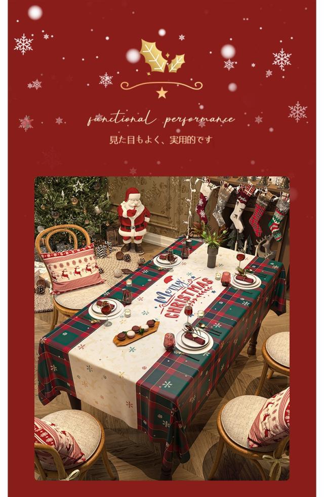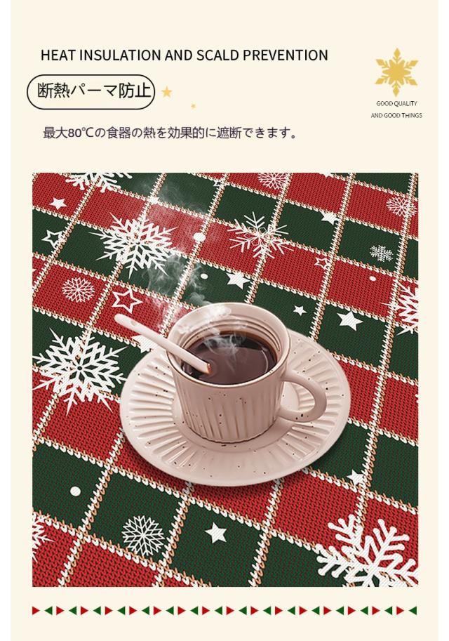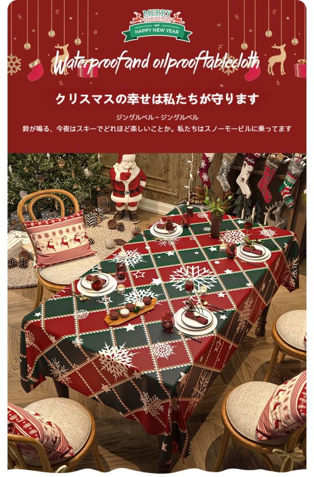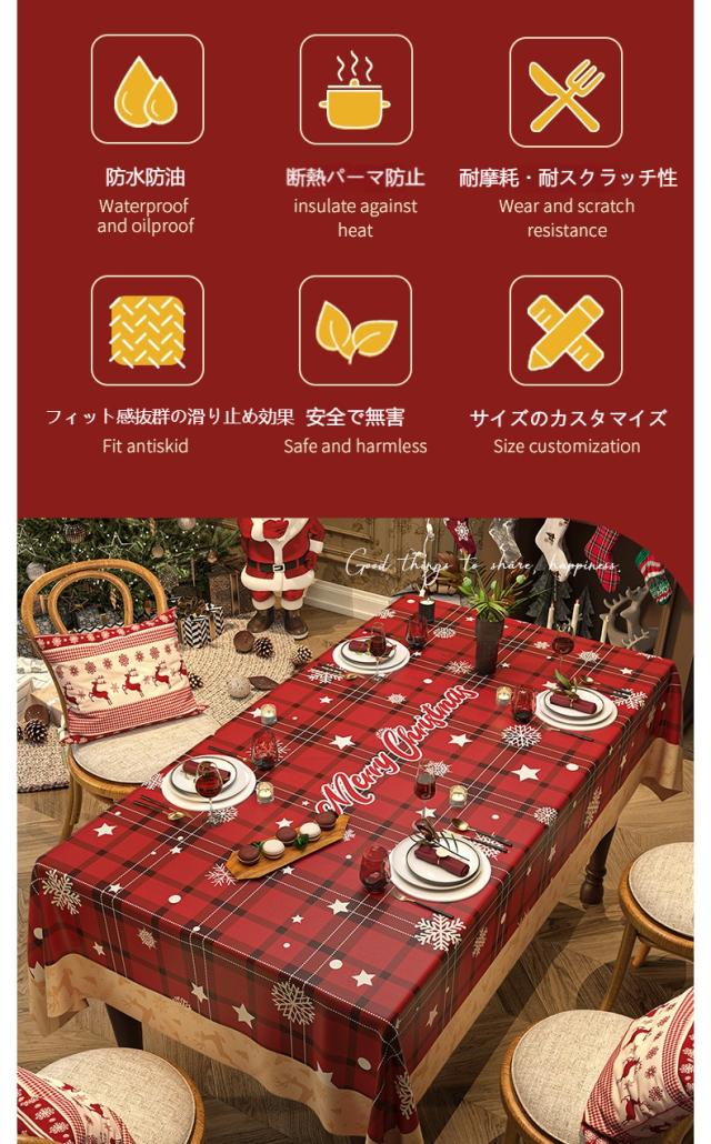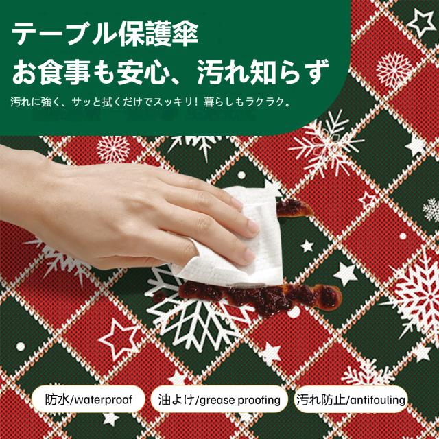 テーブルクロス、防水テーブルクロス、防油クロス、耐熱マット、滑り止めクロス、PVCテーブルカバー、ダイニングテーブル用、クリスマステーブル、撥水、防汚、パーティー用、食卓カバー、デコレーション、ホームパーティー、洗えるクロス