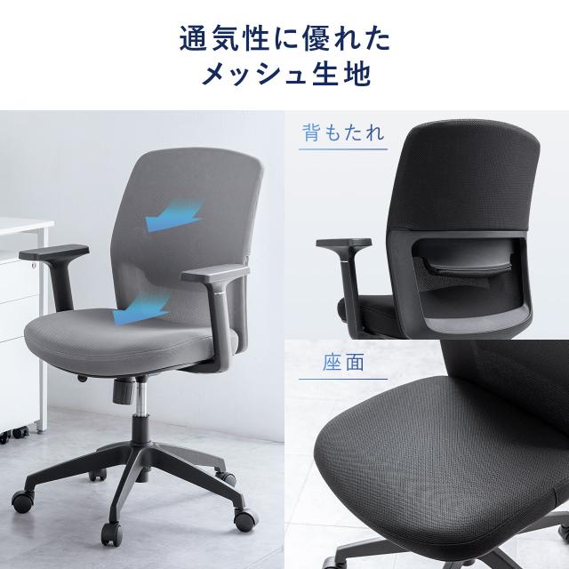 オフィスチェア メッシュチェア アームレスト付き ロッキング 上下調節可能ランバーサポート ウレタンクッション ナイロンキャスター ブラック グレー[150-SNCM67]
