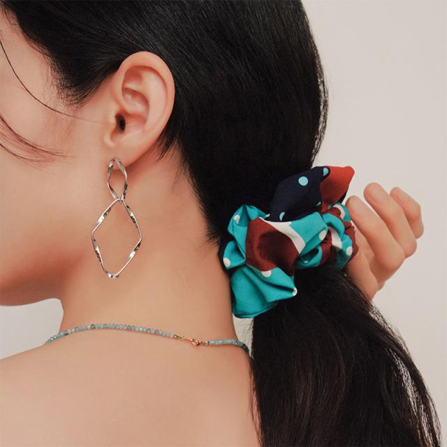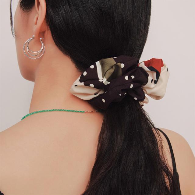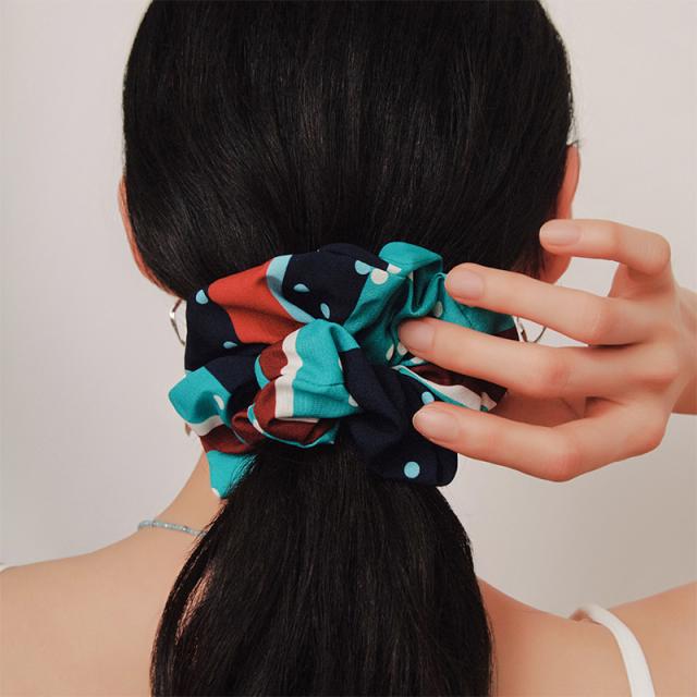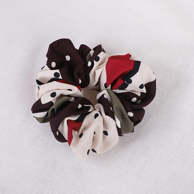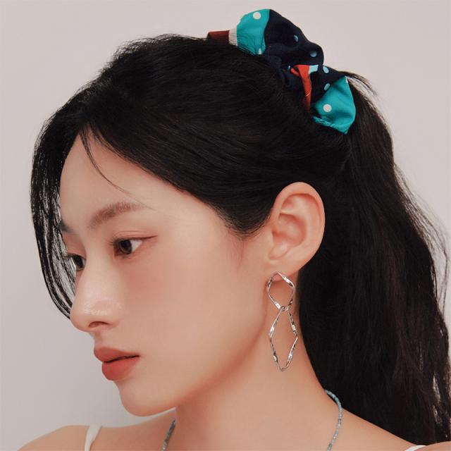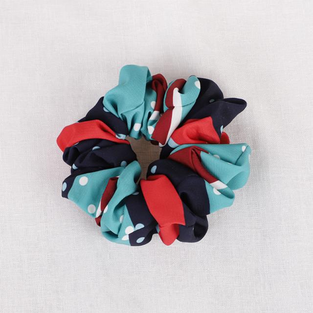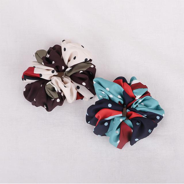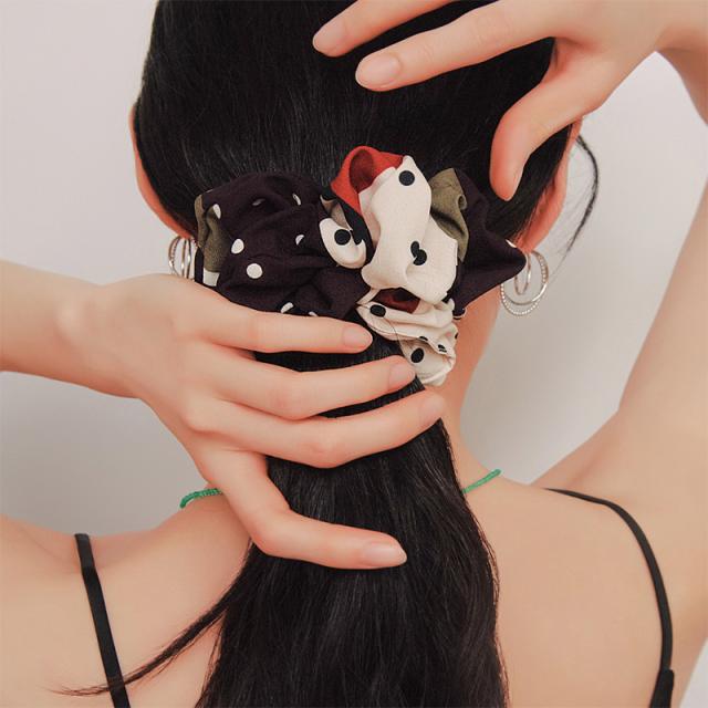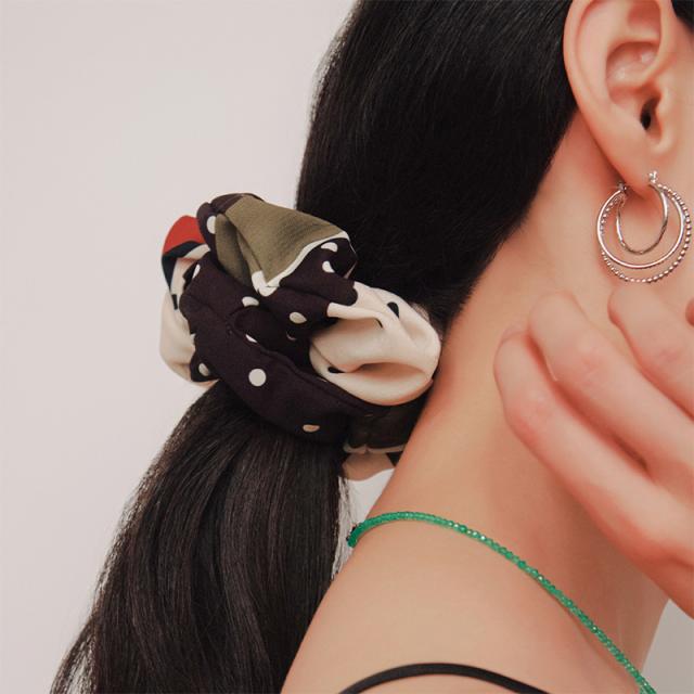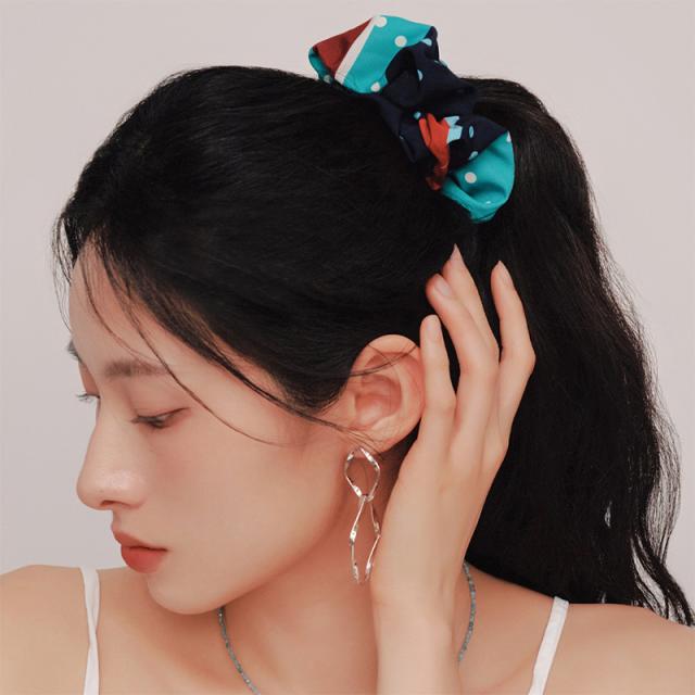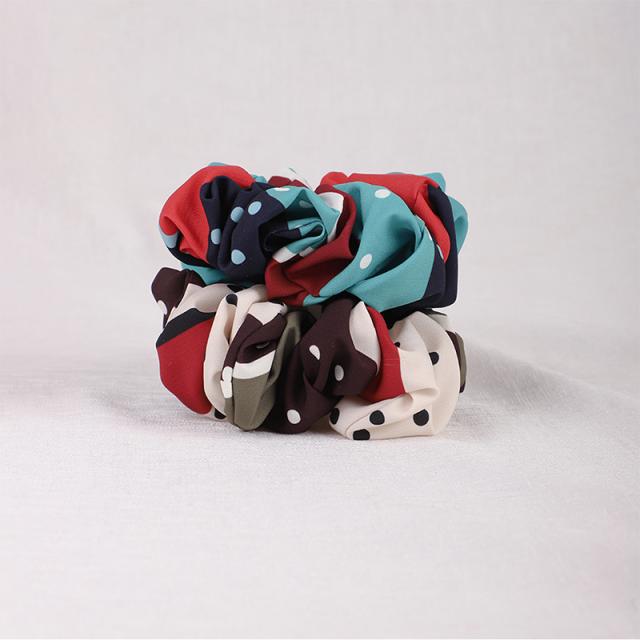 ポップなカラーとドット柄が目を引く、遊び心たっぷりのヘアシュシュ。