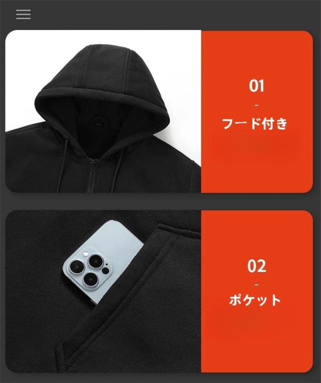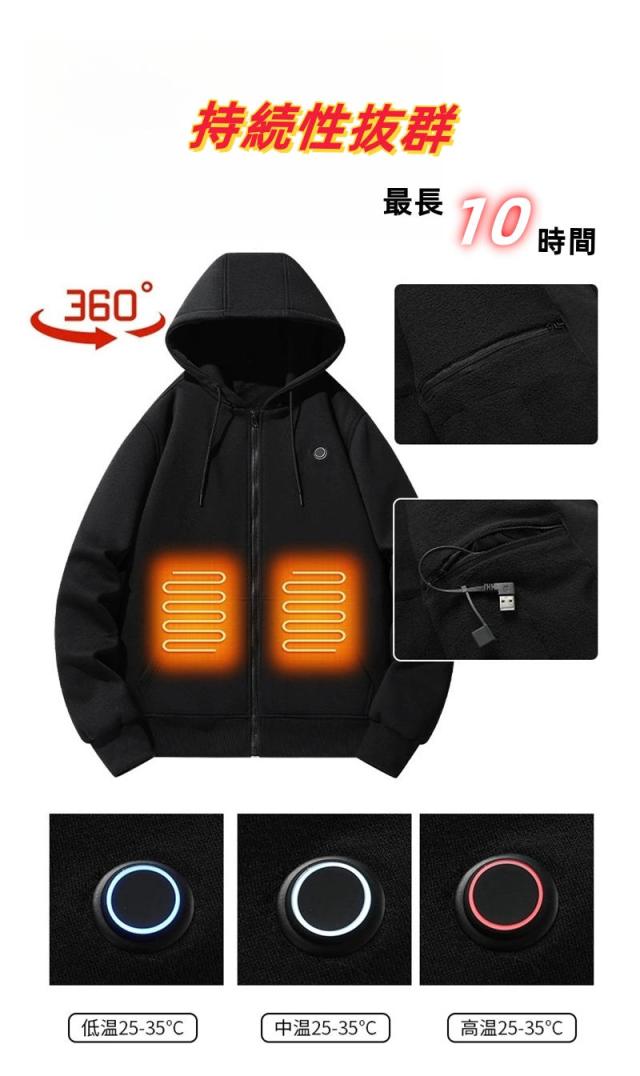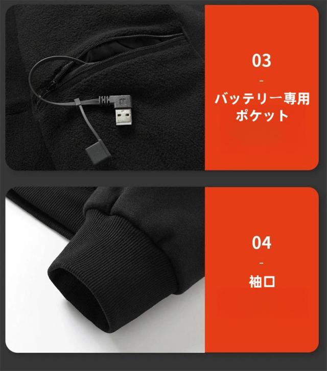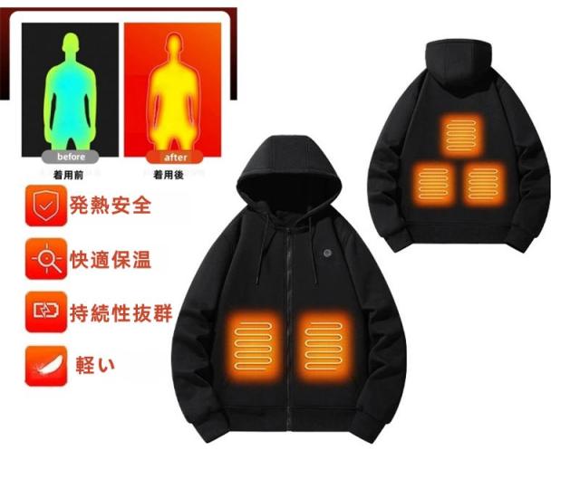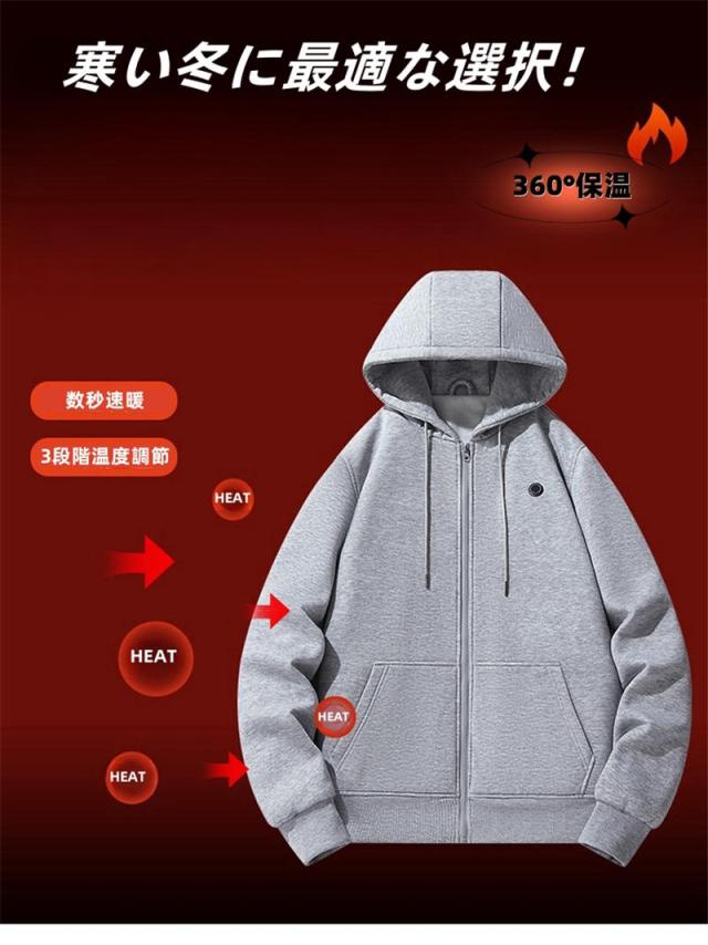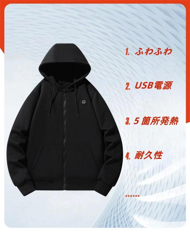 電熱服 加熱服 電熱パーカー 加熱パーカー 加熱ジャケット 電熱ジャケット 加熱ベスト 5つヒーター USB充電式 3段階 冷え症 防寒 男女兼用 発熱服 即暖
