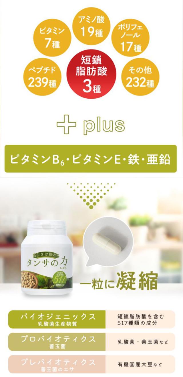 【ポイント5倍】タンサの力(ちから)517【短鎖脂肪酸を含む 乳酸菌生産物質517種類含有サプリメント】腸活最先端・ポストバイオティクス(栄養機能食品ビタミンE)酢酸 酪酸 花粉症 免疫 便秘