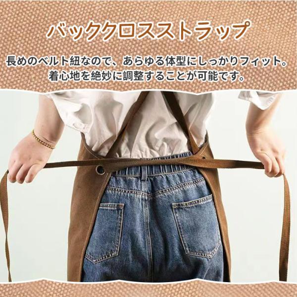 ・長めのベルト紐で 男性 でも 女性 でも体型に合わせて 調節可能 な エプロン