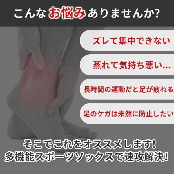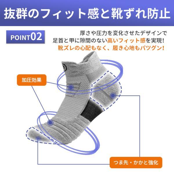 ・負担がかかるつま先、かかとにクッション性アップの為厚手に織り込まれた生地を採用し衝撃吸収&耐久性アップ、歩行やランニングの衝撃から足を保護