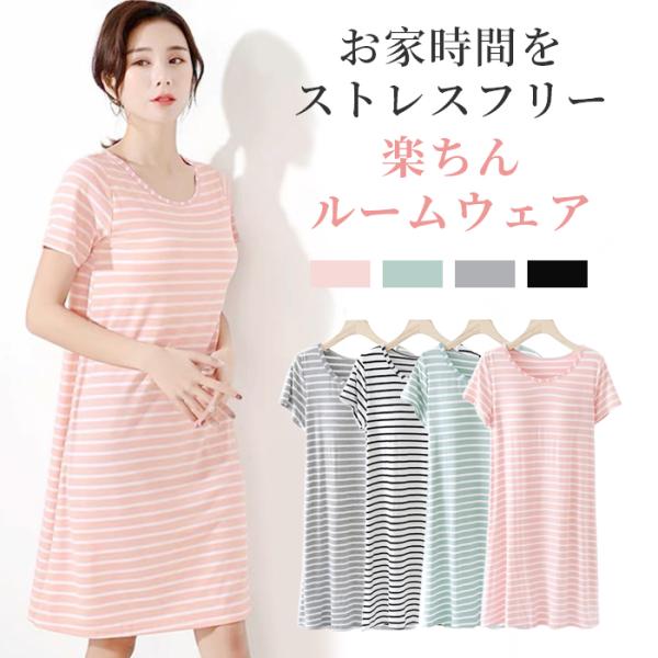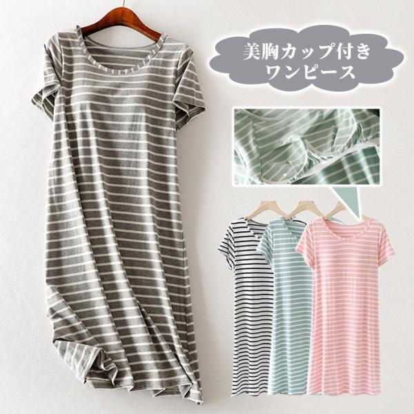 ルームウエア ワンピース 半袖 夏 レディース カップ付き tシャツ パジャマ 部屋着 ルームウエア 40代 30代 50代 60代