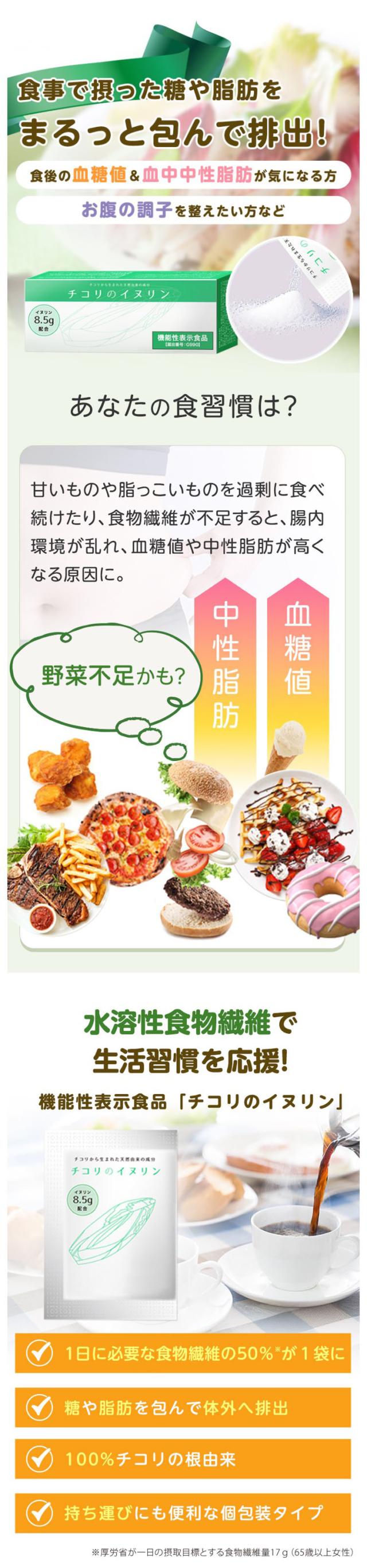 〇名称:イヌリン含有食品 〇原材料名:イヌリン(ベルギー製造)※イヌリンはチコリから抽出された天然由来の成分です 〇内容量:1箱 200g(1袋10g×20袋) 〇1日当たりの摂取目安量:1袋 〇摂取の方法:1日1袋を目安に、お水やコーヒー、紅茶、牛乳など、お好きな飲み物に溶かしてお召し上がりください。また、ヨーグルトやシリアルなどにふりかけたり、お料理にもお使いいただけます。