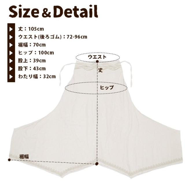 丈 105cm ウエスト (後ろゴム)72-96cm 裾幅 70cm ヒップ 100cm 股上 39cm 股下 43cm わたり幅 32cm