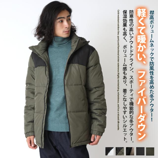 ダウンジャケット メンズ アウター メンズ 中綿 ファイバーダウンジャケット ライトダウンジャケット