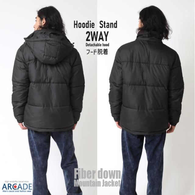 デュスポ 中綿ジャケット 秋 新作 メンズ アウター 中綿入りジャケット ファイバーダウンジャケット フルジップ パーカー 取り外し 2way脱着 ブルゾン 撥水加工 冬服 ダウン ブルゾン