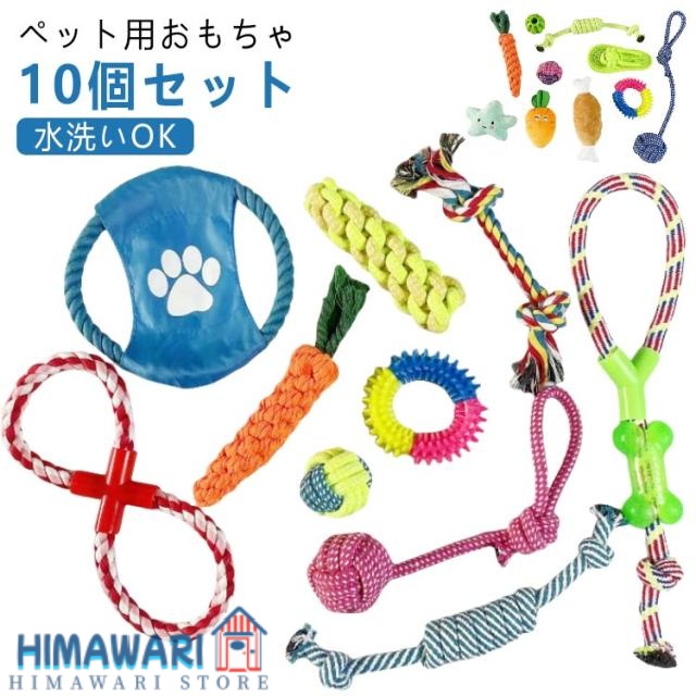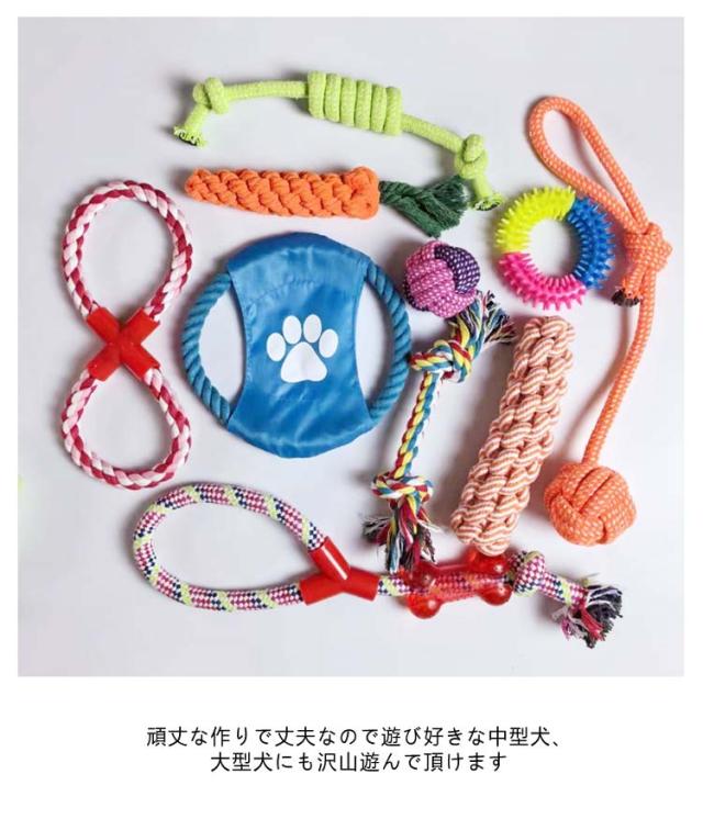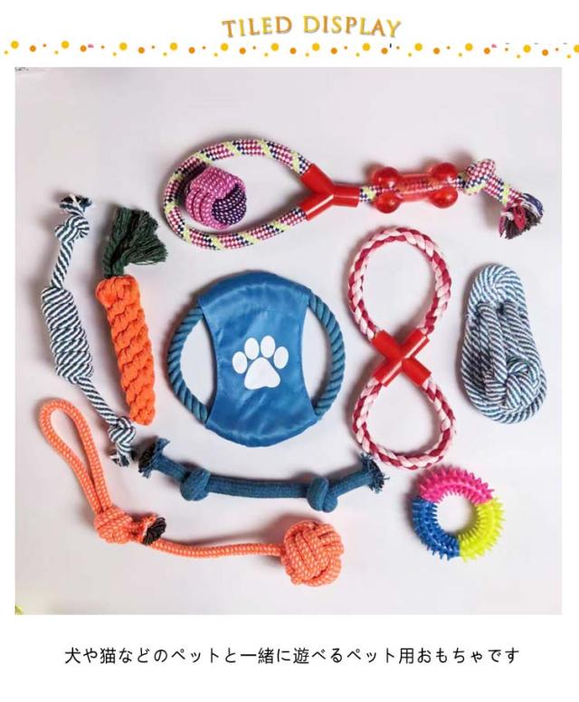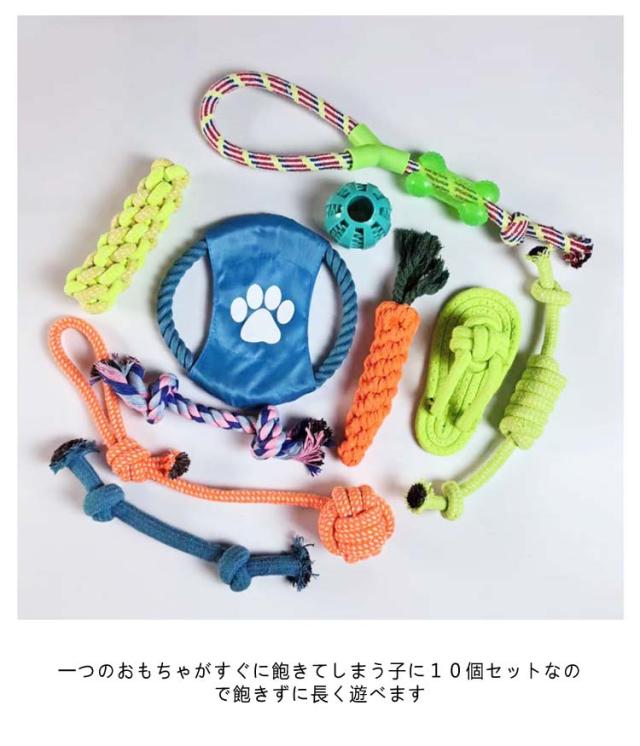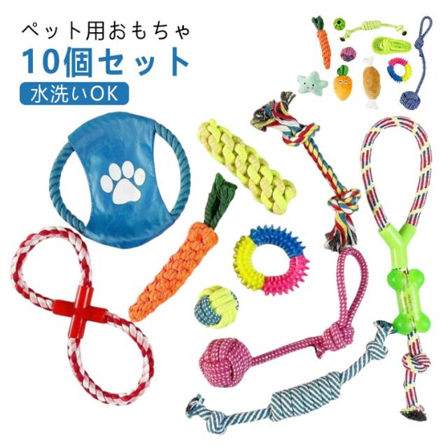 | ペット用おもちゃ 10個セット 犬や猫などのペットと一緒に遊べるペット用おもちゃです 一つのおもちゃがすぐに飽きてしまう子に10個セットなので飽きずに長く遊べます 頑丈な作りで丈夫なので遊び好きな中型犬、大型犬にも沢山遊んで頂けます | |