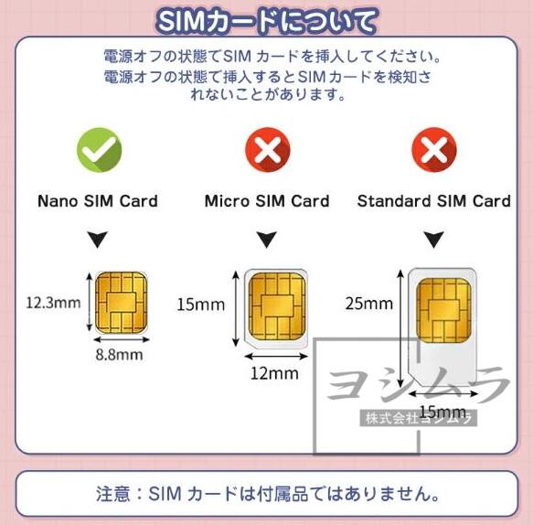 ※楽天モバイルのSIMやUQSIMは利用不可です。格安SIMカード、データSIMカードの利用する場合、一部の音声通信或いは、データ通信機能は利用できません。