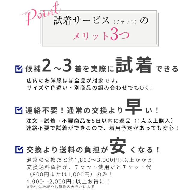 試着チケット ネットで試着 サイズ カラーに不安のある方にオススメ