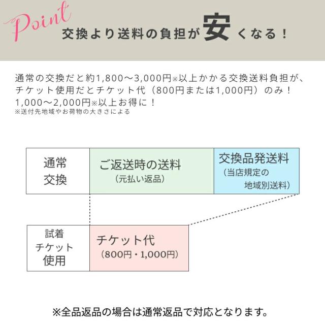 チケットを同時購入し、最終的に1着以上ご購入いただければ、返品送料の負担なくご試着いただけます。