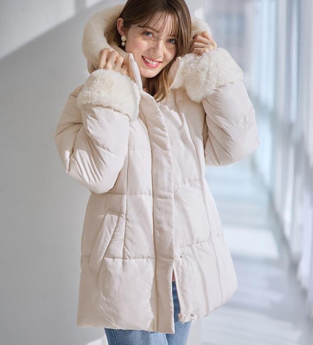 フードと袖口のファーは肌あたりがやさしく、上品なボリューム感で季節感をプラス。