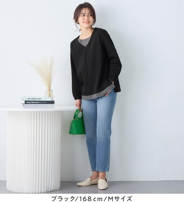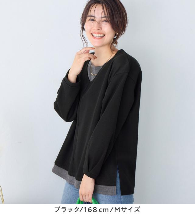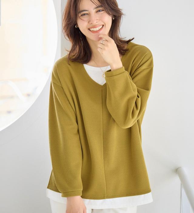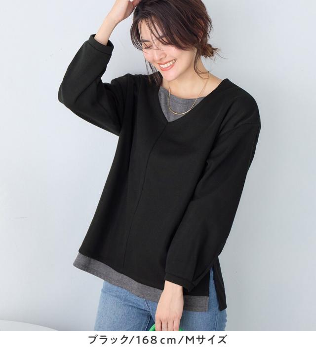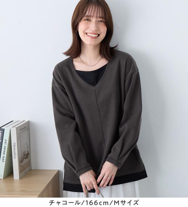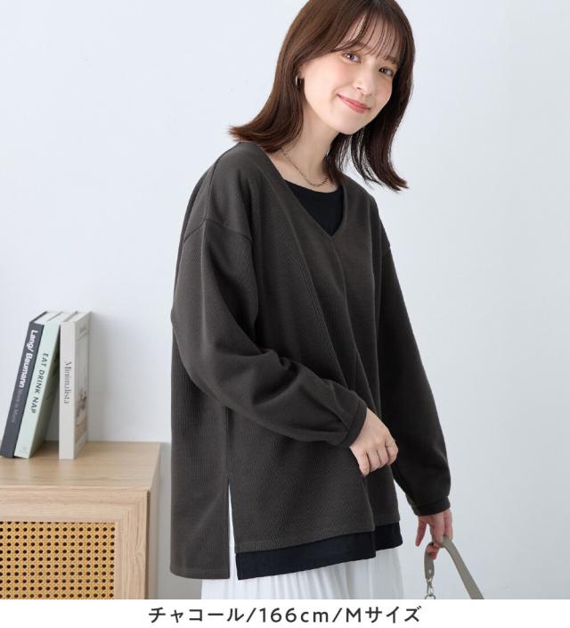 あったかレイヤード風Vネックトップス