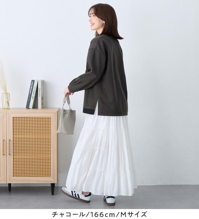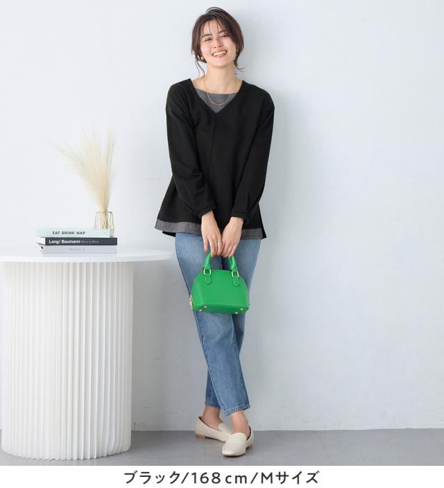 重ね着風のデザインなので、これ一枚でトレンド感のある着こなしが即完成。忙しい朝もコーディネートに悩まずおしゃれが楽しめます♪