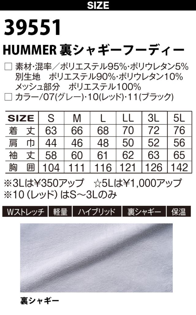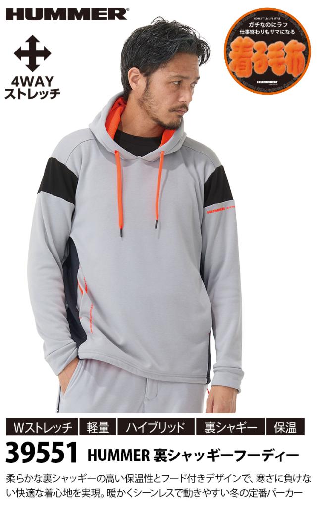 アタックベース HUMMER 裏シャギーフーディ— 39551 大きいサイズ 5L 着る毛布 Wストレッチ 軽量 裏シャギー 保温 軽防寒 現場 建築 建設 工事 屋外作業 パーカー 定番 カジュアル 秋冬 作業着 作業服 ATACKBASE