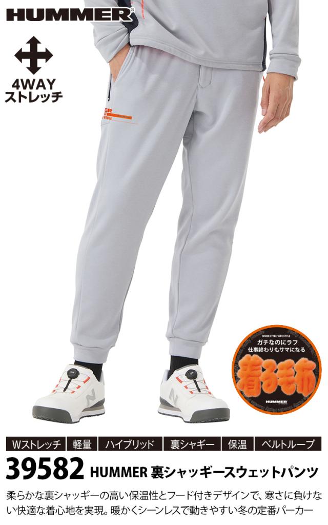 アタックベース HUMMER 裏シャギースウェットパンツ 39582 総ゴム 着る毛布 Wストレッチ 軽量 裏シャギー 保温 軽防寒 現場 建築 建設 工事 屋外作業 ズボン 定番 カジュアル 秋冬 作業着 作業服 ATACKBASE