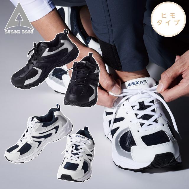 アタックベース カジュアルシューズ 紐タイプ 10370 *先芯なし 合皮 メッシュ スニーカー 作業靴 現場 倉庫 軽作業 スポーツ 定番 普段使い カジュアル 作業着 作業服 APEXWIN ATACKBASE
