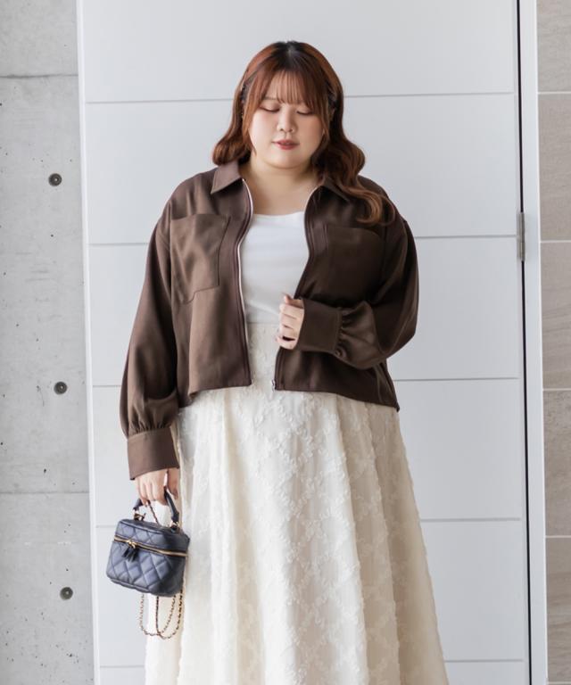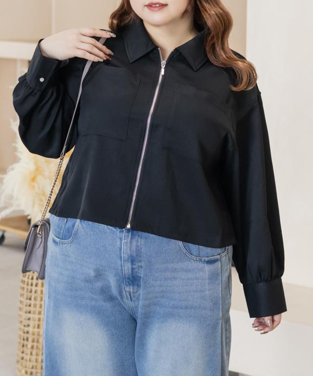 大きいサイズ/レディース/3L/4L/5L/フロントジップショートシャツジャケット