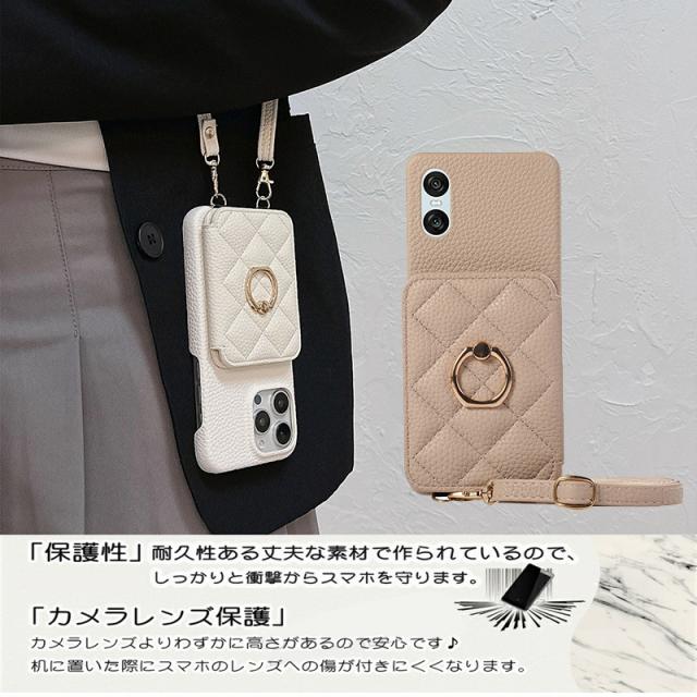 xperia 10vii sog16 ケース スマホショルダー リング付き エクスペリア 10viiケース スマホケース xperia10vii SO-52F 1 VII 10 VI 1VI 5V 5IV III ケース おしゃれ 可愛い 携帯ケース 背面手帳型ケース キルティング 背面カードケース ストラップ 斜め 肩掛け