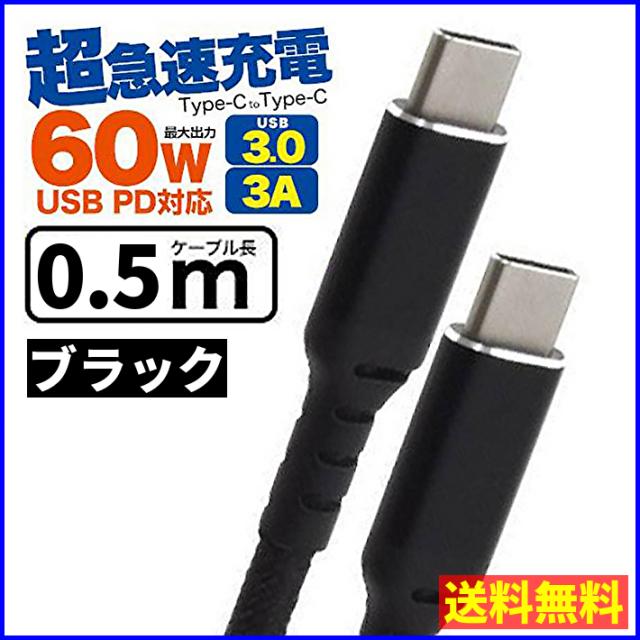 【送料無料】USB Type-C to USB Type-C 充電ケーブル 超急速充電 最大60W PD対応 50cm 0.5m ブラック [ctoc-50bk]