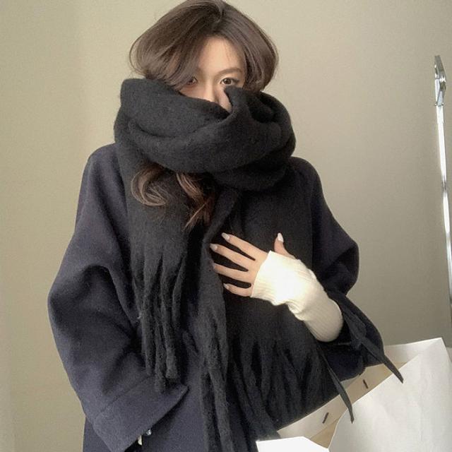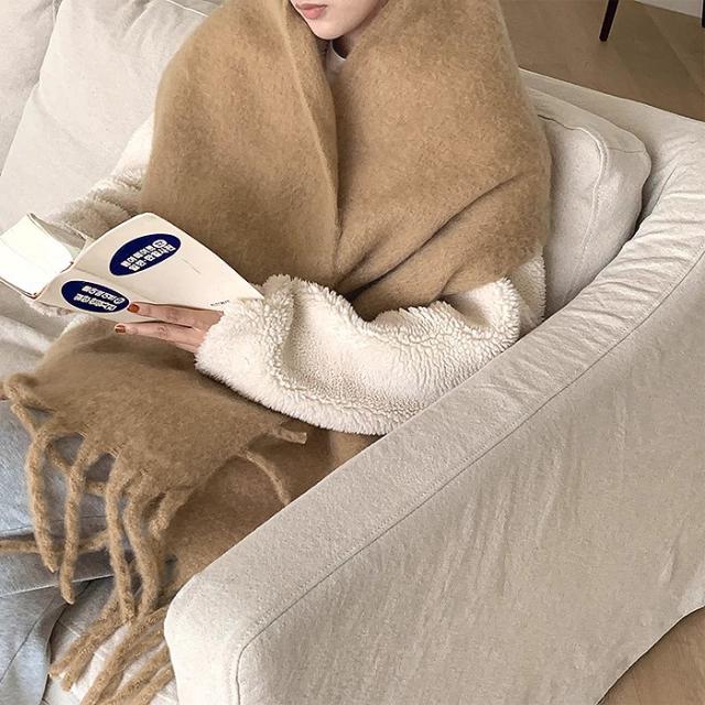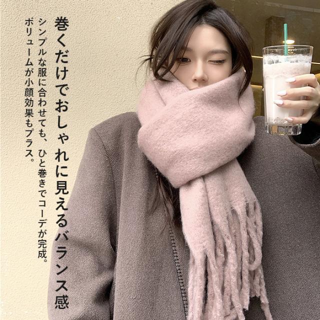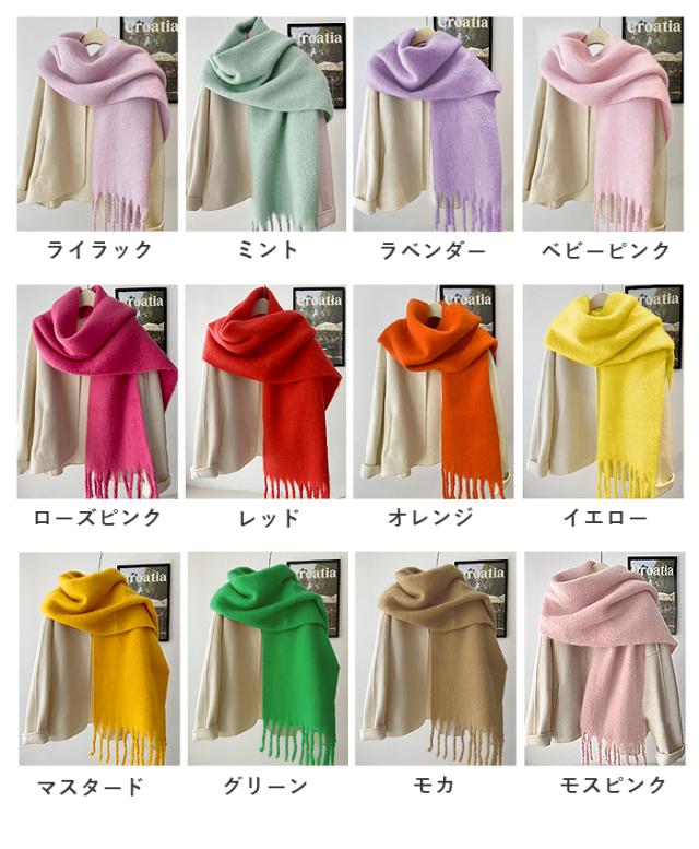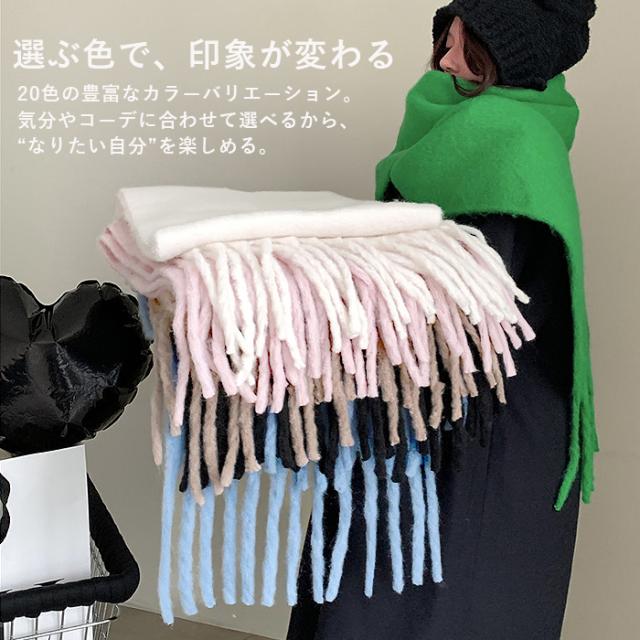 マフラー ボリュームマフラー ビッグマフラー ストール モヘア フリンジ 大判 ふわふわ もこもこ 防寒 防風 冬 男女兼用 ユニセックス 軽量 推し色 白黒 [郵3]^bm1566^