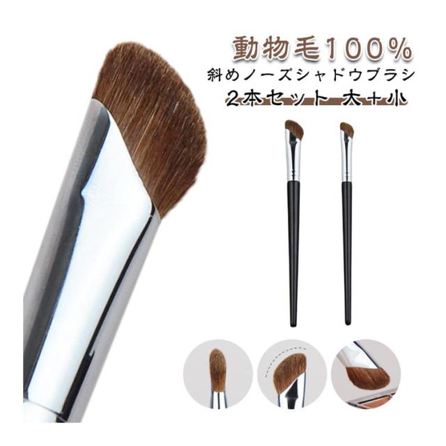 ノーズシャドウブラシ 小鼻ブラシ 粉含みよい メイクブラシ ノーズシャドウ 【2本セット】 鼻影 動物毛100% シェーディングブラシ ポニー毛 メイクブラシ 大+小 高密度毛 斜め 発色が良い ノーズシャドウブラシ 立体感 ブラシ