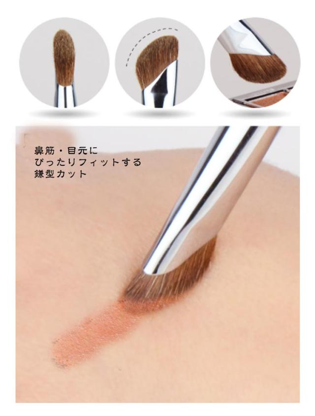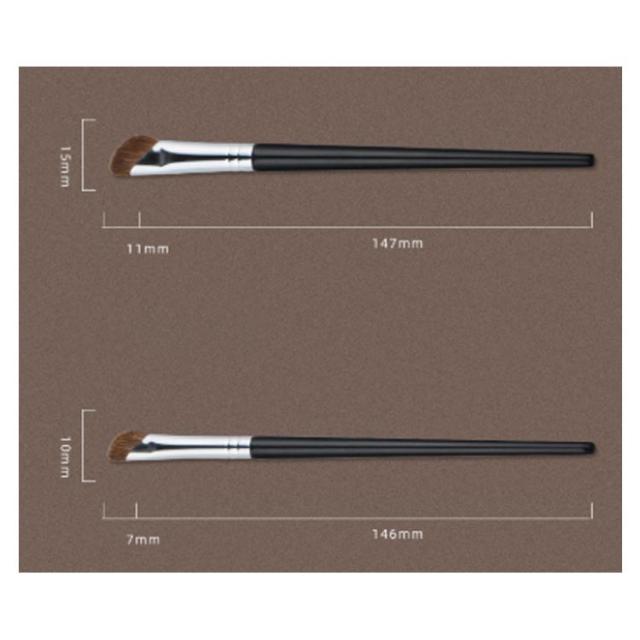 | 斜めノーズシャドウブラシ 2本セット 大+小 動物毛100% 【立体感を強調! 】:立体感を強調するように設計されたノーズシャドウブラシです。 斜めの毛先が鼻筋や小鼻のラインにぴったりフィットし、自然なシェーディングを実現します。 【柔らかく肌に優しい】:毛質は天然ポニー毛を使用し、肌あたりがふんわりやさしいので、敏感肌の方にもおすすめです。 【粉含みよい】:毛は適度に長くて柔らかく、粉を含める能力は十分です。 こうすることでシャドウパウダーをしっかりキャッチし、均一に塗ることができます。 【 均一自然な効果】:斜めの毛先が鼻の輪郭によりよくフィットし、均一なブレンドと美しいグラデーション効果を生み出します。 メイクに均一なシェーディングと自然なルックを与えます。 ・ 鼻筋・目元にぴったりフィットする鎌型カット ・ 高密度の柔らかいポニー毛で粉含み抜群&自然な発色 ・ 初心者でも使いやすく、ムラなく仕上がる安心設計 | |