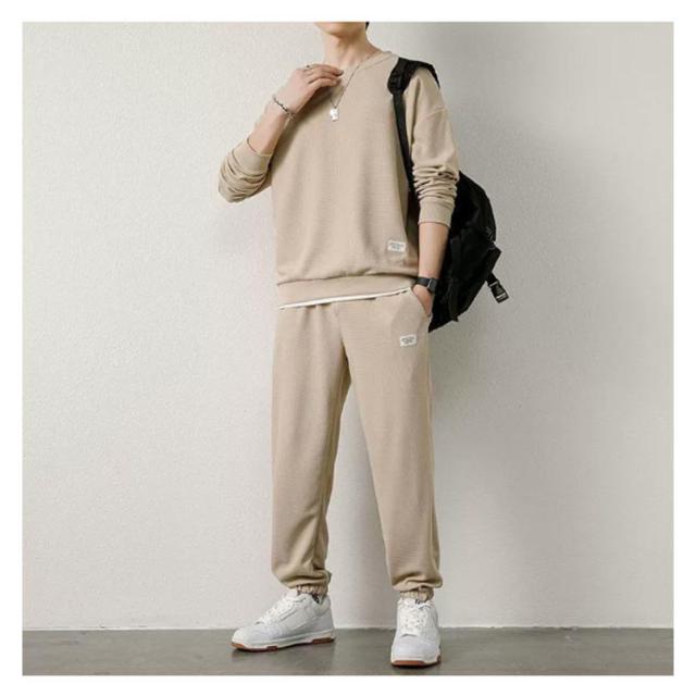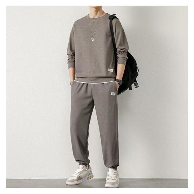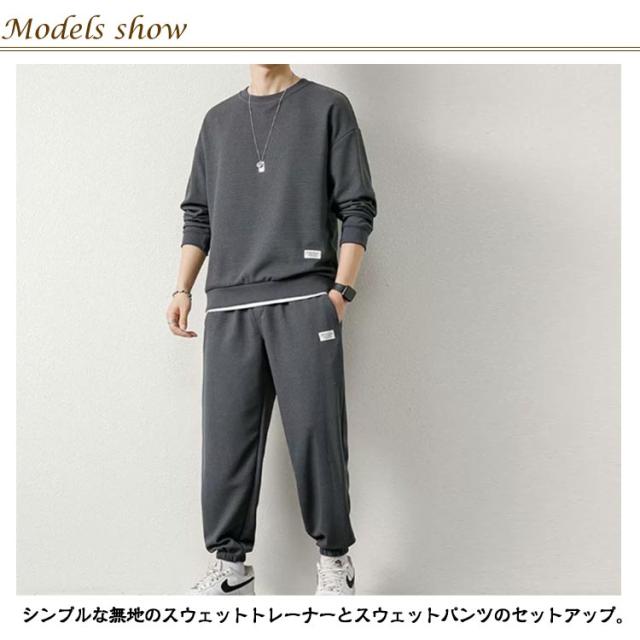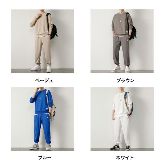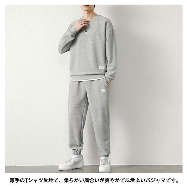 2点セット 春秋冬 長ズボン 上下セット 春服 スウェット ロングパンツ セットアップ tシャツ メンズ カットソー パジャマ トレーナー 運動着 部屋着 ルームウェア 寝巻き 長袖tシャツ 秋服 春 秋 カジュアル