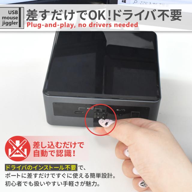 マウスジグラー マウス ジグラー マウスムーバー マウス操作 マウス移動器 ランダム軌道 自動カーソル 自動マウス USB パソコン PC Windows Mac スリープ防止 ブラックアウト防止 テレワーク リモートワーク ゲーム 挿すだけ 簡単接続 シズカウィル