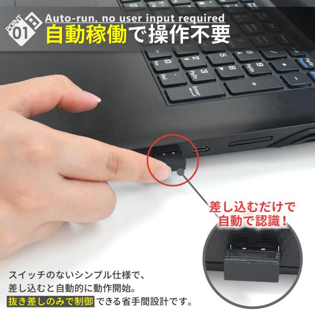 = ポートに挿すだけで自動動作、抜き差しのみで制御できます