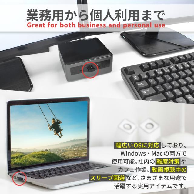 マウスジグラー マウス ジグラー マウスムーバー マウス操作 マウス移動器 usb USB 接続 ノートパソコン PC Apple MacBook Mac windows 取り付け簡単 差し込むだけ 軽量 コンパクト デザイン 持ち運び 在宅ワーク テレワーク zoom 遠隔授業 テレビ会議 リモートワーク リモート授業 おしゃれ オシャレ