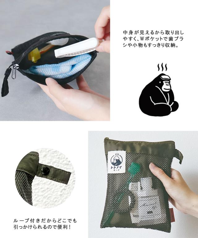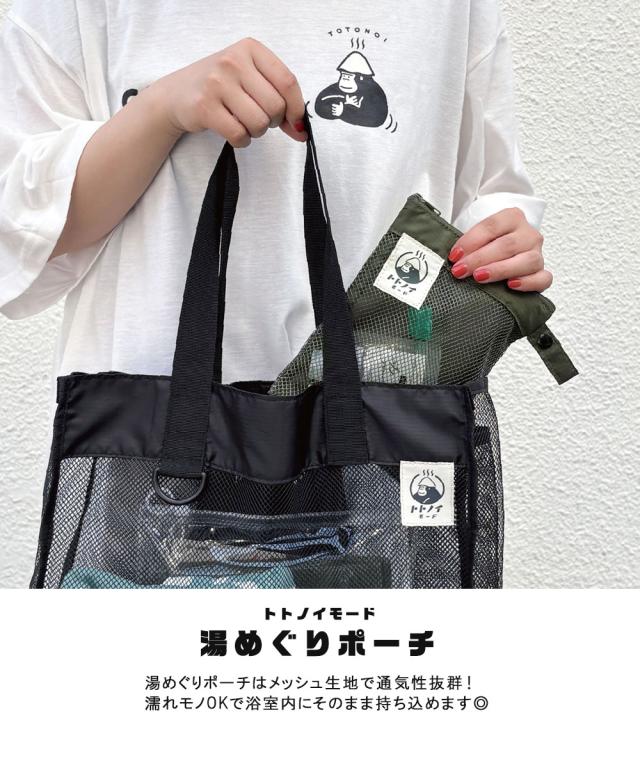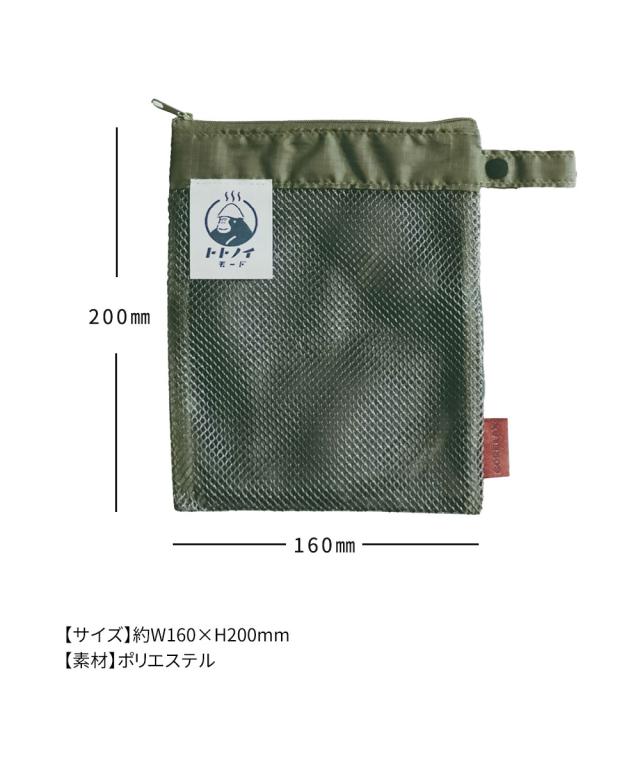 ごリラックス メッシュポーチ おしゃれ かわいい メッシュ 速乾性 通気性 軽量 軽い サウナグッズ サウナ 温泉 銭湯 岩盤浴 スポーツ ジム フィットネス トレーニング アウトドア サウナー サウナバッグ ポーチ 黒 ブラック カーキ GORELAX トトノイモード 湯めぐりポーチ