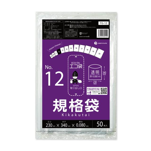 規格袋 12号 23x34cm 0.080mm厚 透明 50枚 FG-12bara 食品検査適合 ポリ袋 袋 平袋 保存袋 食品袋 梱包 No.12 クリア RoHS指定 サンキョウプラテック