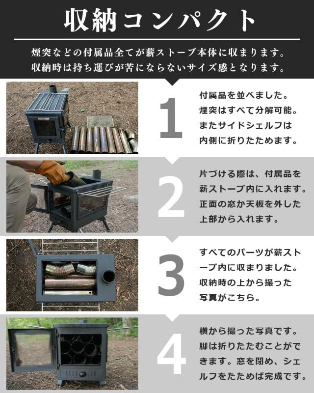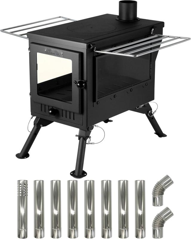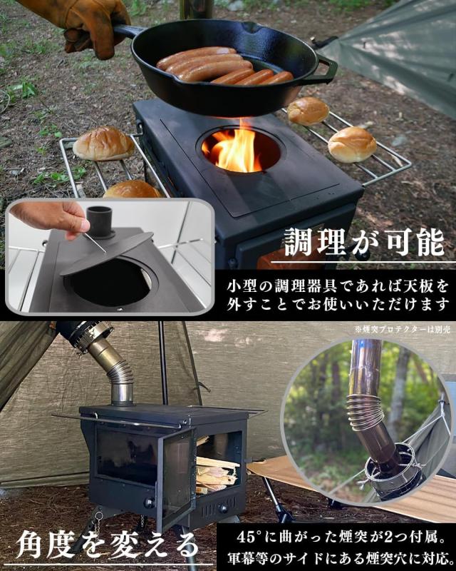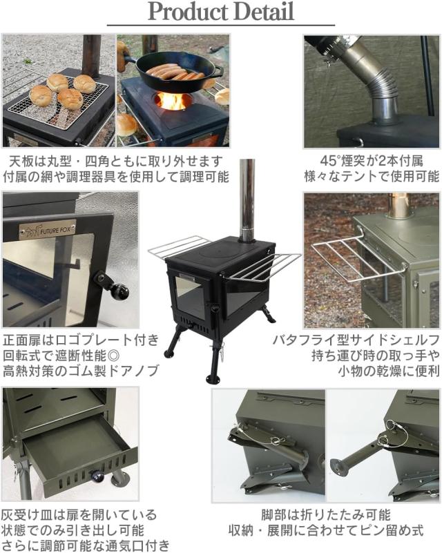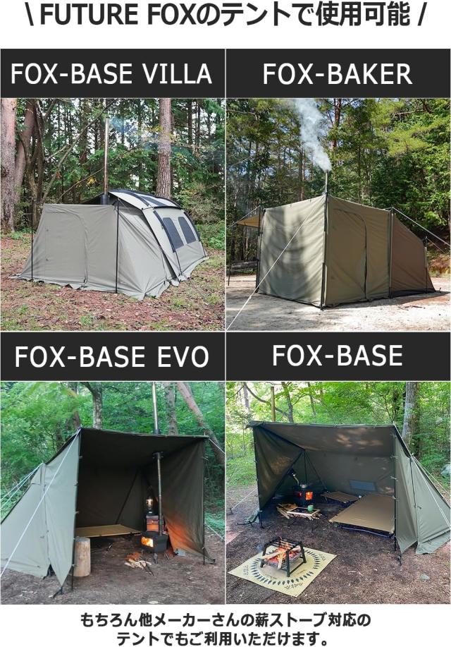 FUTUREFOX 薪ストーブ 最大52.5×40×263cm テントストーブ 折りたたみ式 煙突付属 3面ガラス 調理可能 鉄製