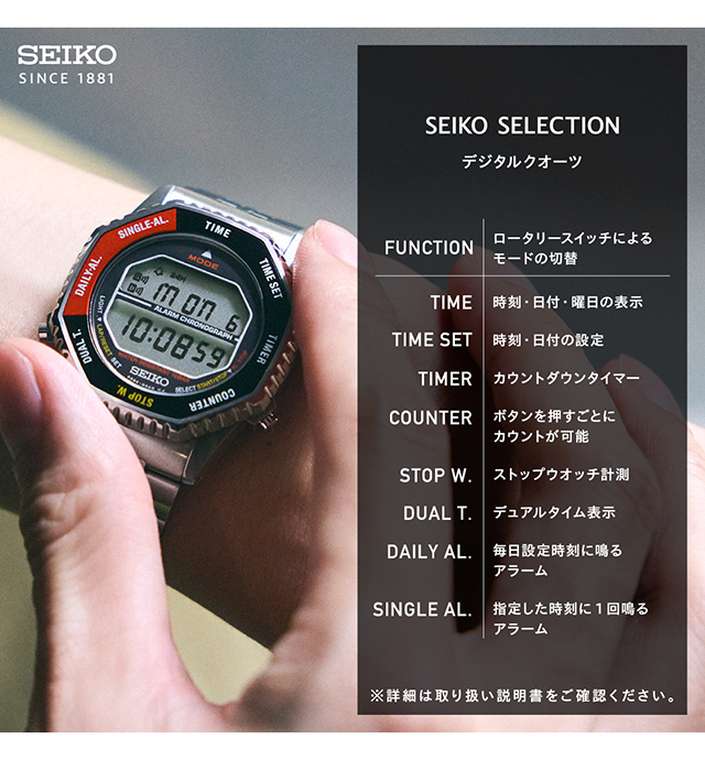 正規品 7年保証キャンペーン 送料無料 セイコーセレクション クロノグラフ メンズ 腕時計 SBJG017 SEIKO SELECTION S Series INTERNATIONAL LINE デジタル ブラック 黒 ◆1982年に発売された、ロータリースイッチ搭載デジタルクオーツ初代モデルを再現した初の復刻モデルが登場。八角形のベゼルを回転させることで機能を呼び出すことができるアイコニックなデザインと、ユニセックスで楽しめるコンパクトな37mmのサイズを再現。液晶版フォントは、オリジナルモデルに忠実に復刻しながら、「AM/PM表示」「電池切れ予告」の機能を追加しました。アルミ製ベゼル表示板を採用し、1980年代のモデルから着想したレトロなカラーリングを再現しました。メタルブレスレットは、ピッチの細かいオリジナルの装着感を維持し、質感が高い無垢にアップデートしました。 発売日:2025年11月発売