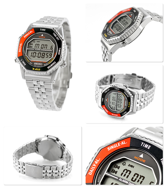 | 仕様 | 日常生活用強化防水(10気圧) 平均月差±20秒 ロータリースイッチ機能 カウンター機能 クロノグラフ(1/100秒計測 99時間59分59秒) アラーム機能(デイリーアラーム・ワンタイムアラーム) タイマー機能(1分単位で最大100分) フルオートカレンダー機能(2074年12月31日まで) デュアルタイム表示機能 電池寿命予告機能 LED照明 回転ベゼル スクリューバック |