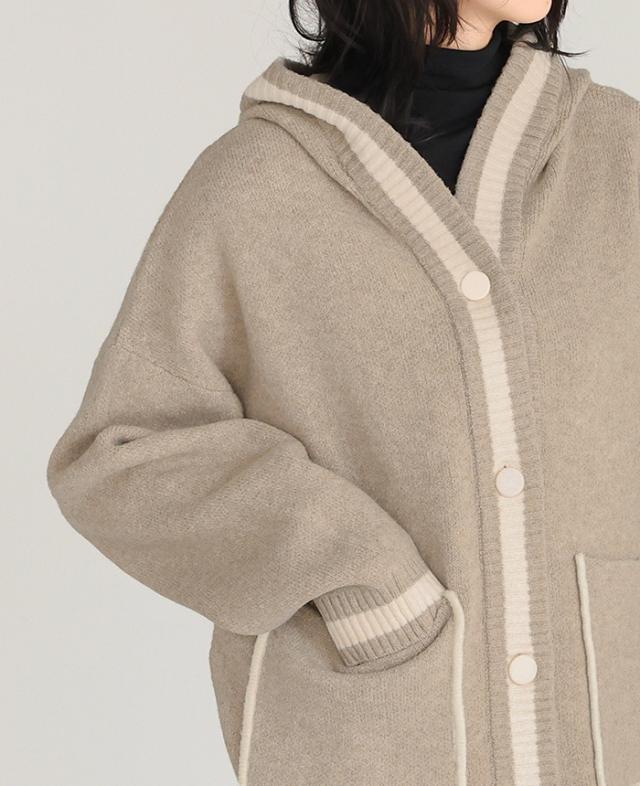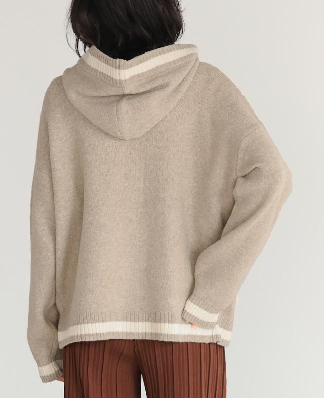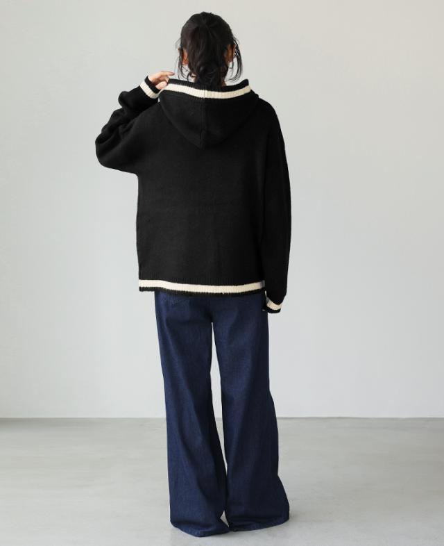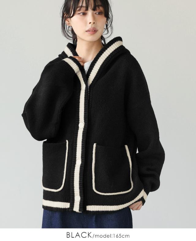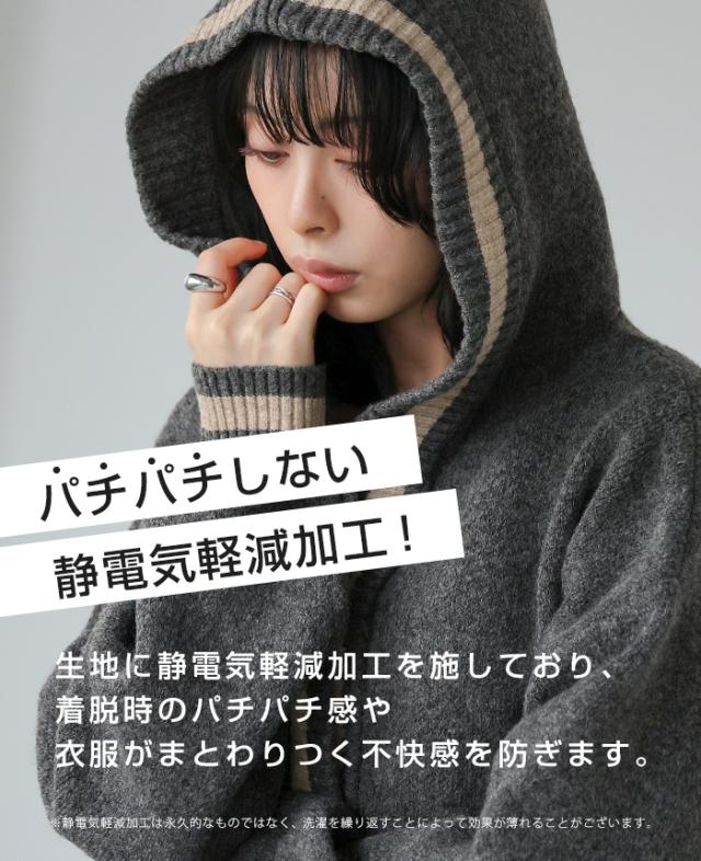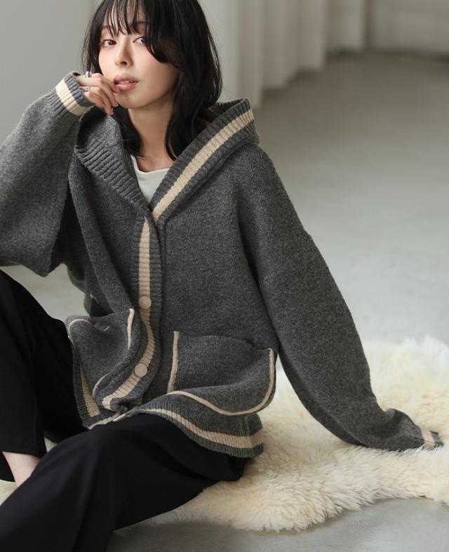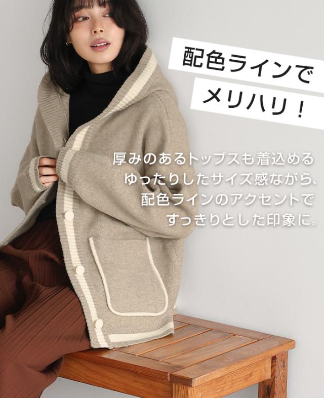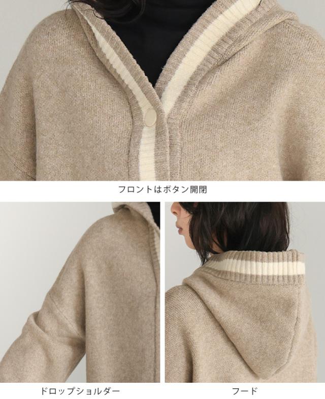 [新作限定P10%×送料無料]配色ニットパーカーカーディガン アウター 羽織り【メール便不可】
