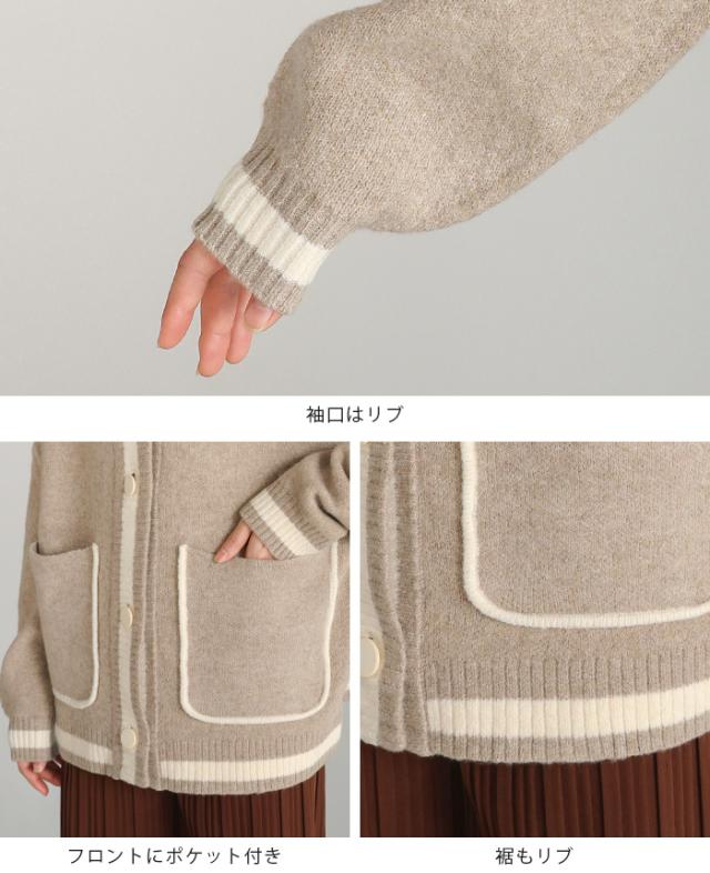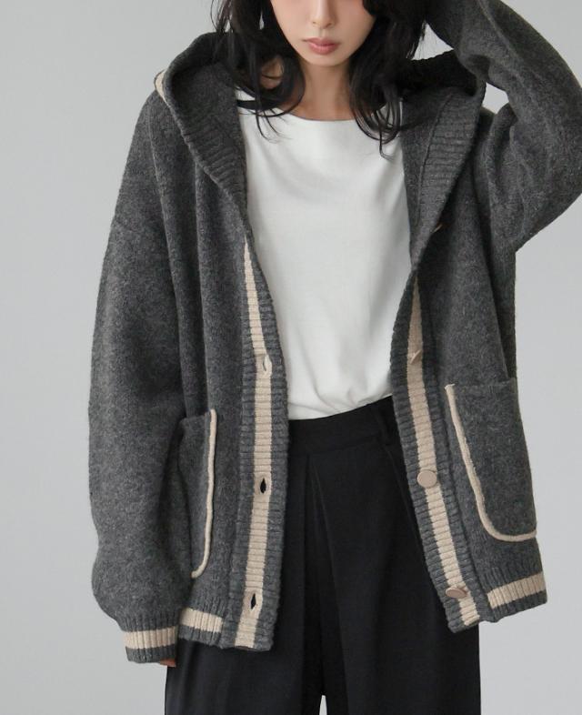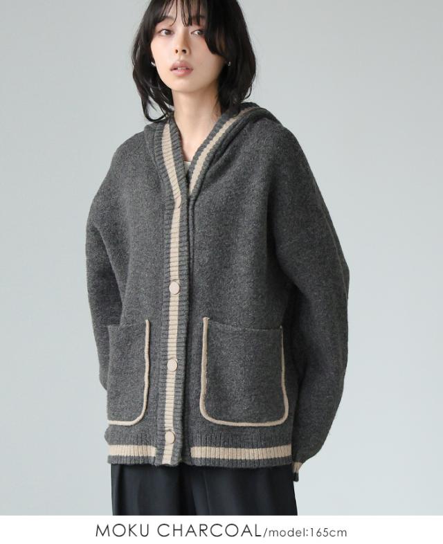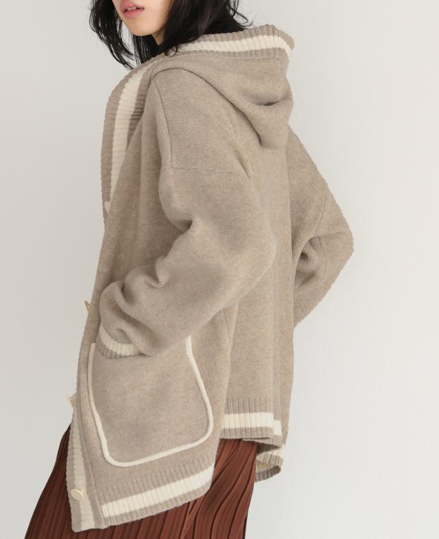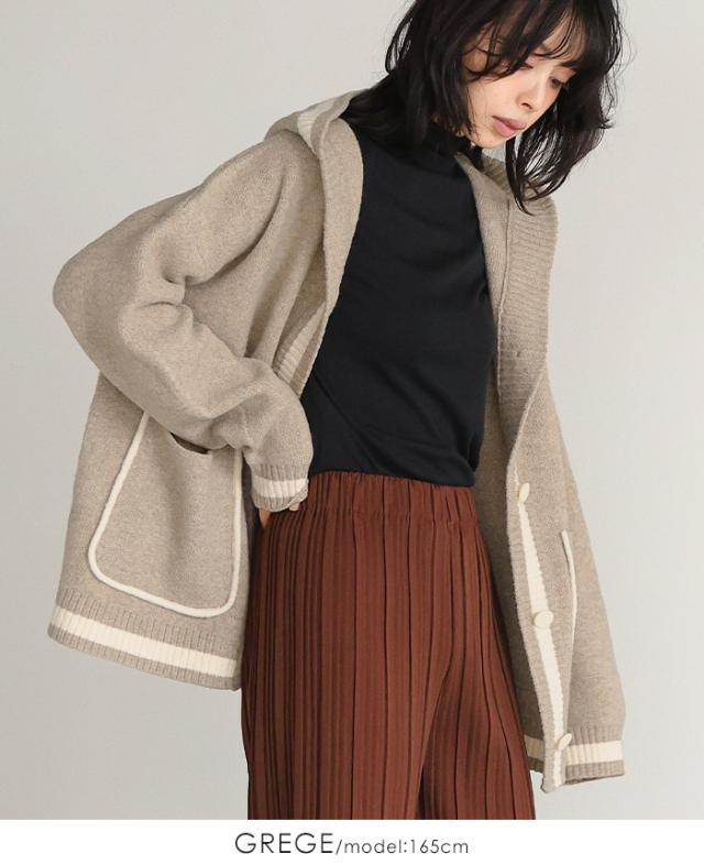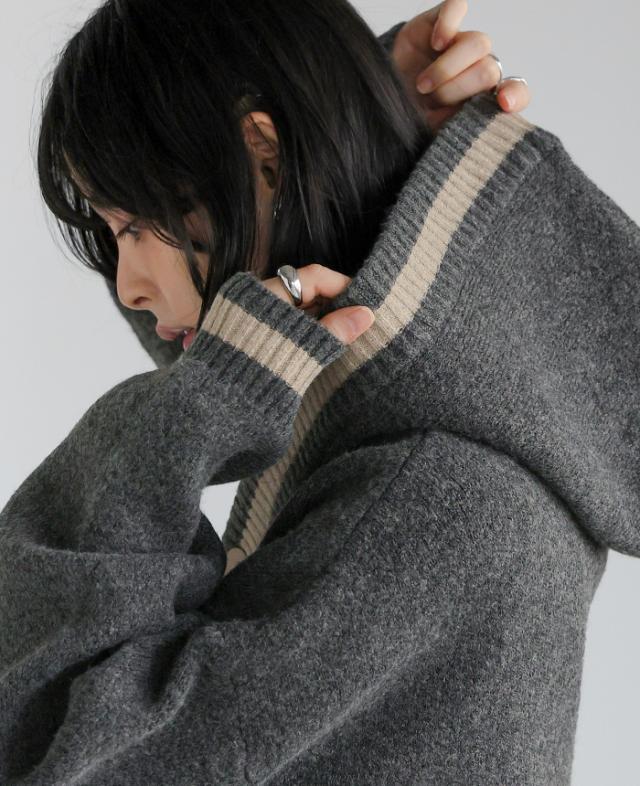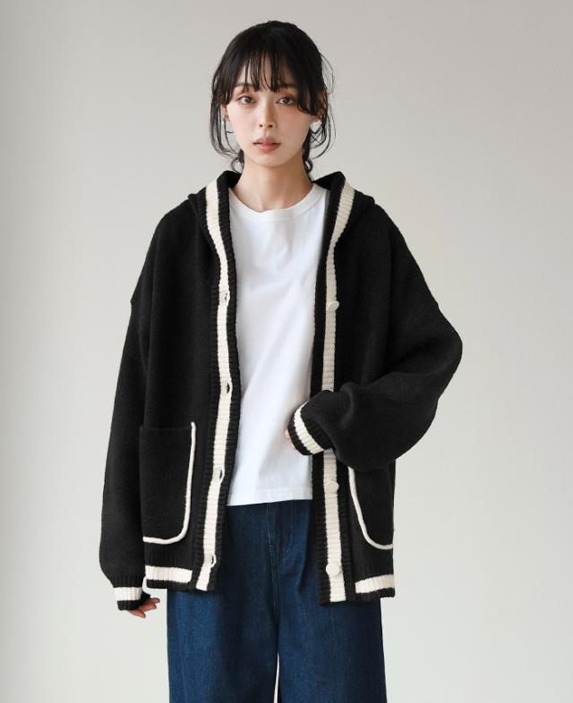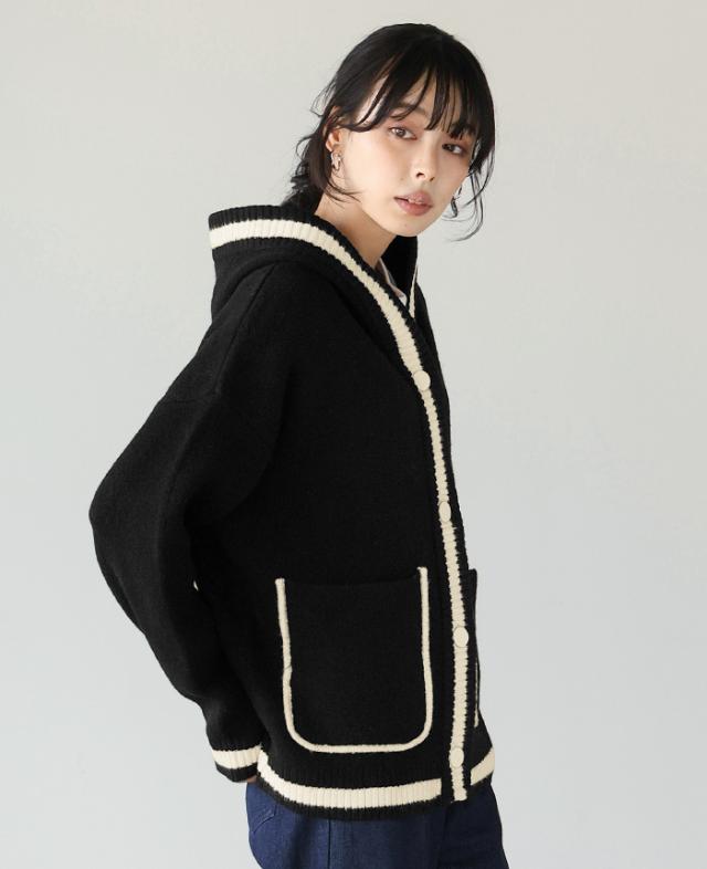 [新作限定P10%×送料無料]配色ニットパーカーカーディガン アウター 羽織り【メール便不可】