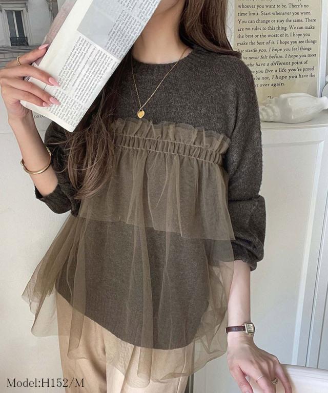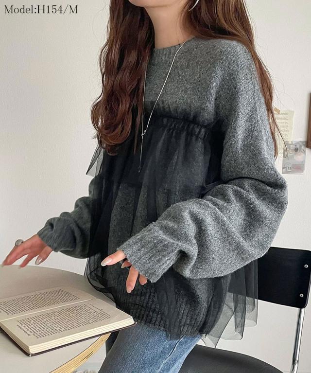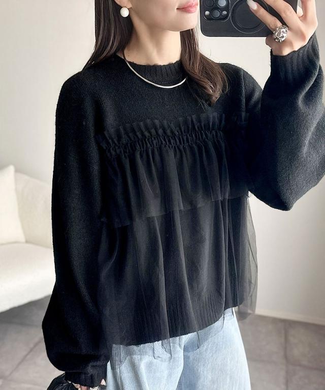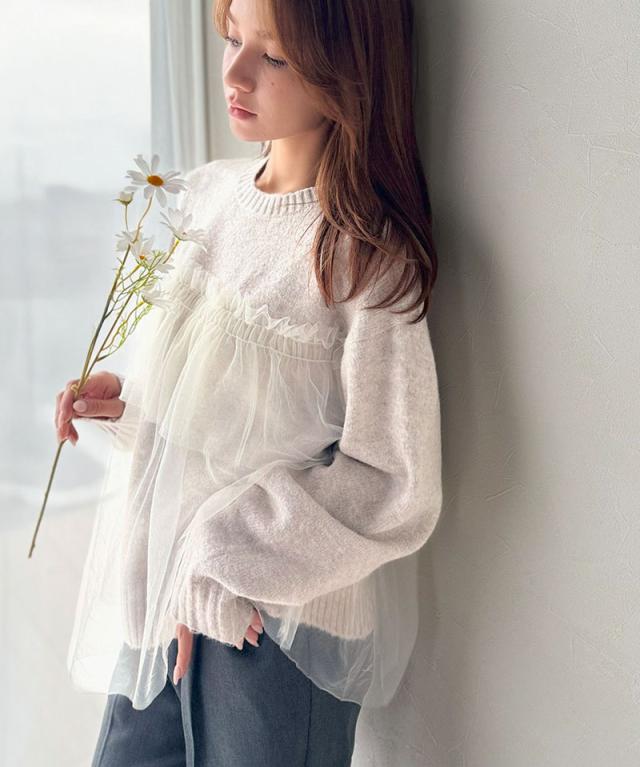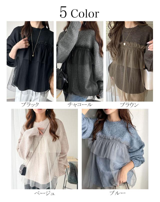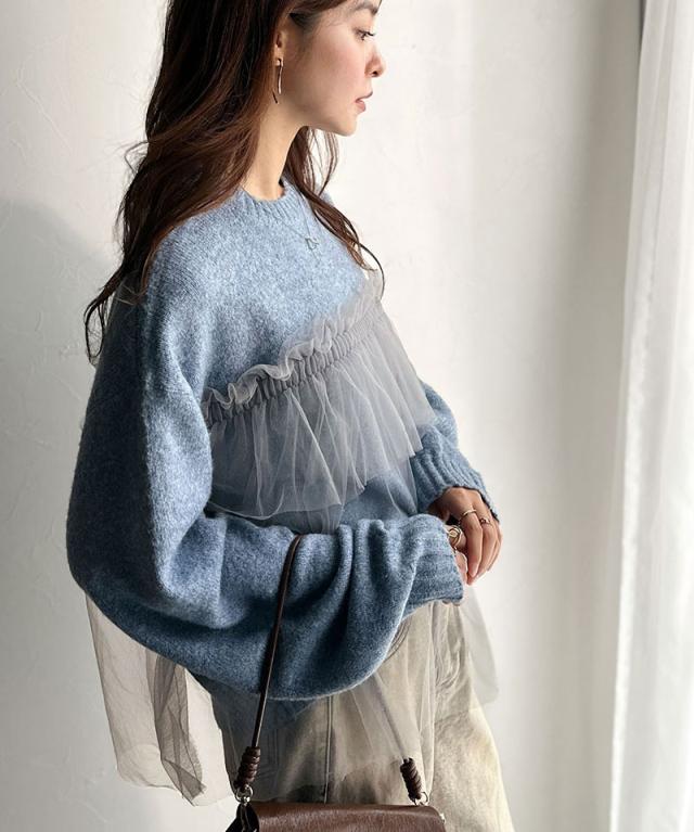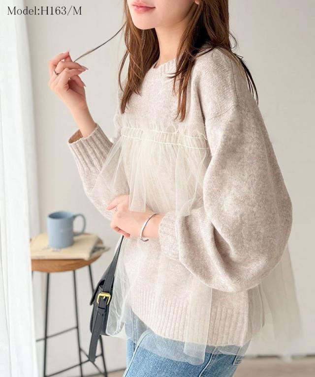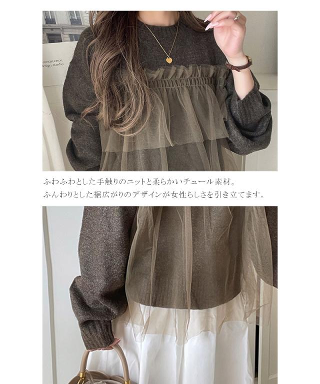 クラシカルエルフ冬新作 ニット レディース 長袖 トップス チュール ドッキング ボリュームスリーブ 華やかさ カジュアル 大人ガーリー ふんわり 華やかさプラス 垢抜け きれいめ たっぷりギャザー お洒落 大きいサイズ 2025aw ce1260441