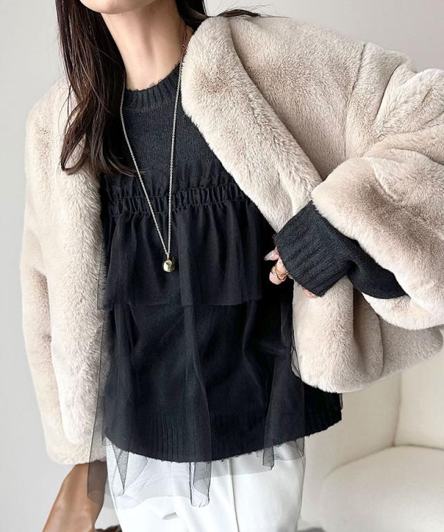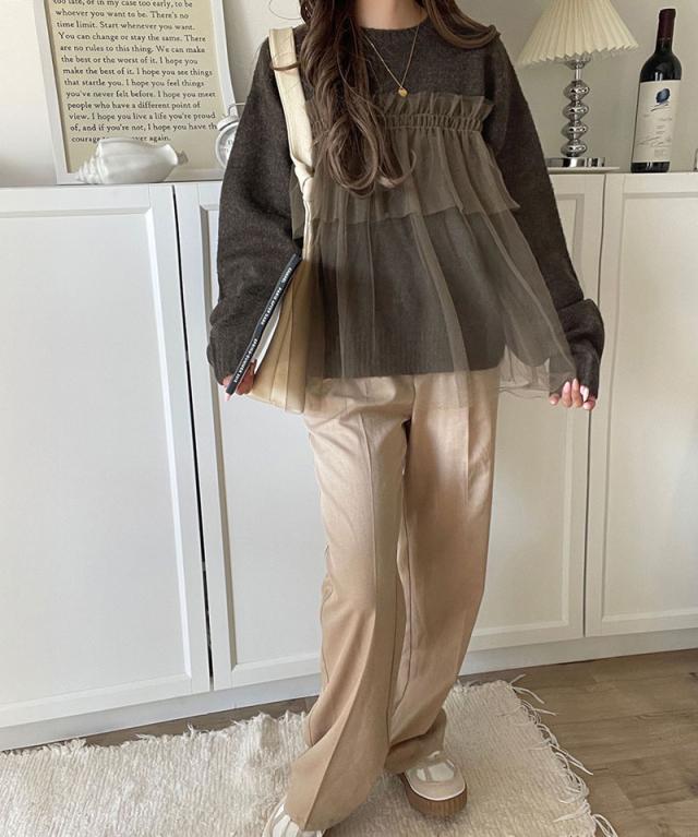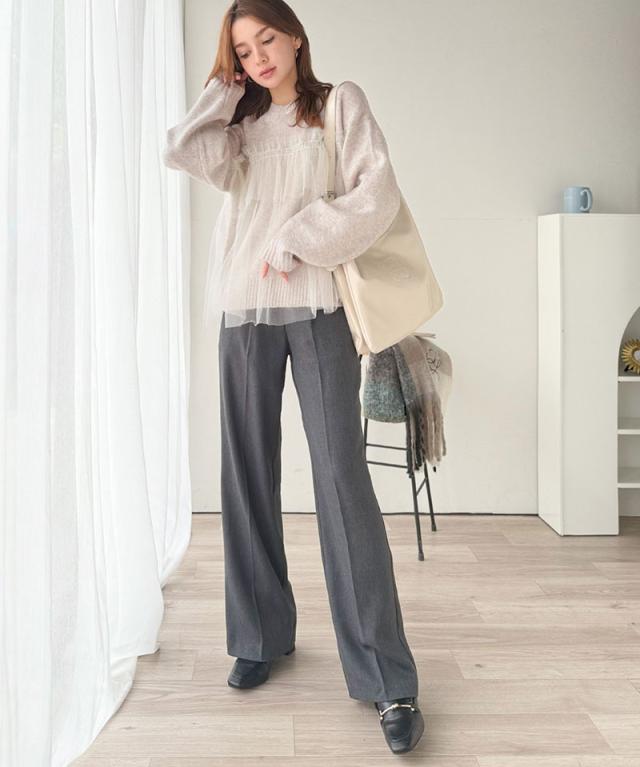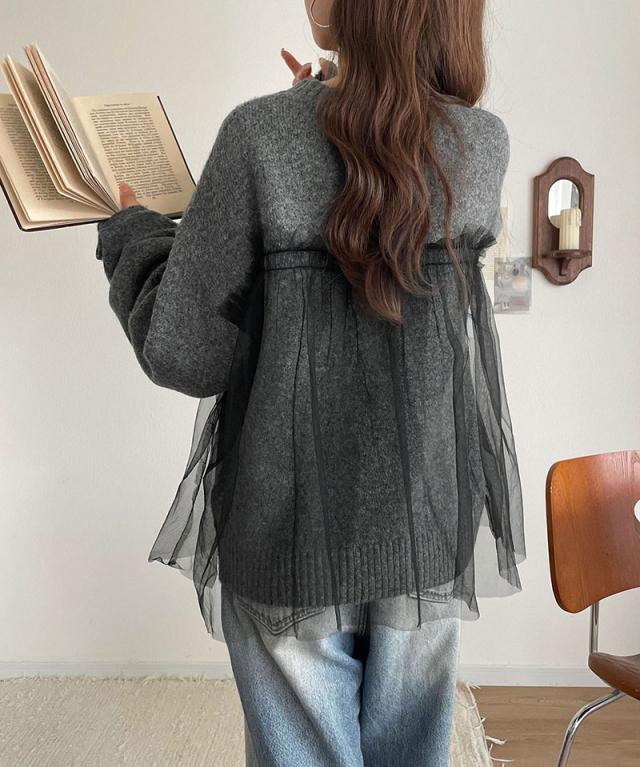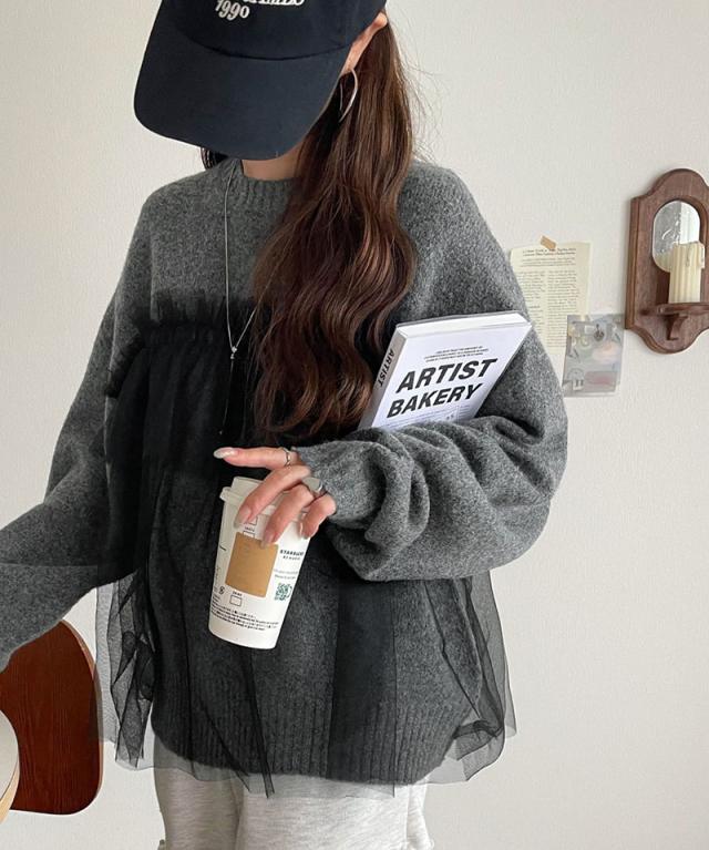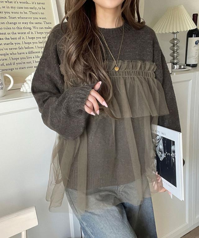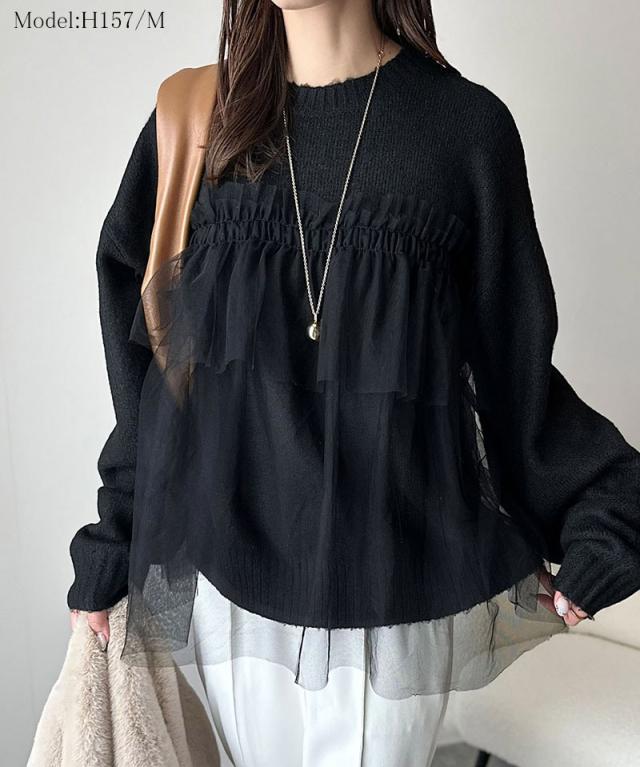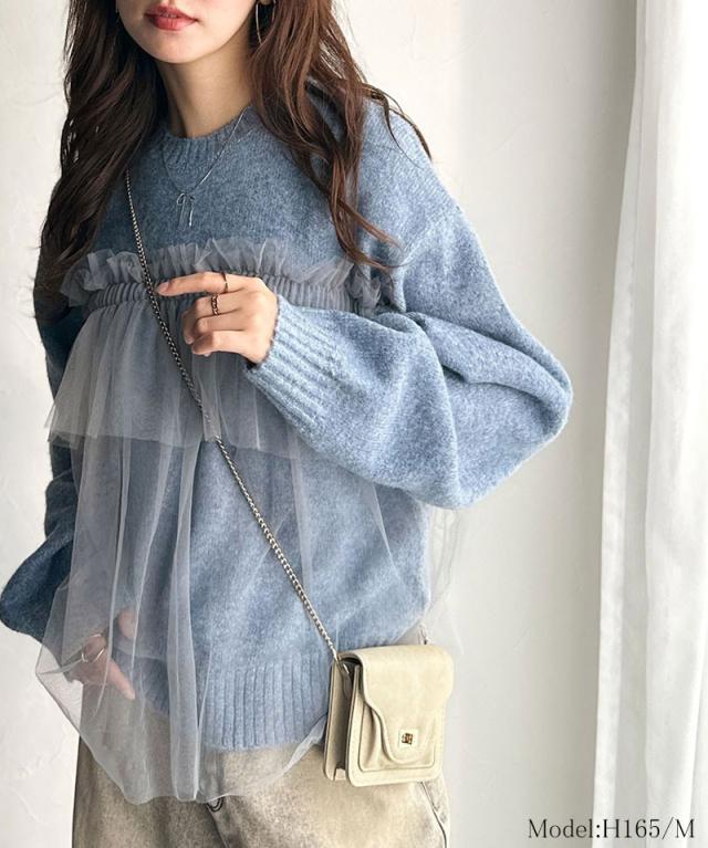 クラシカルエルフ冬新作 ニット レディース 長袖 トップス チュール ドッキング ボリュームスリーブ 華やかさ カジュアル 大人ガーリー ふんわり 華やかさプラス 垢抜け きれいめ たっぷりギャザー お洒落 大きいサイズ 2025aw ce1260441