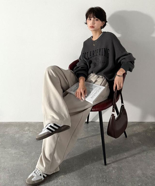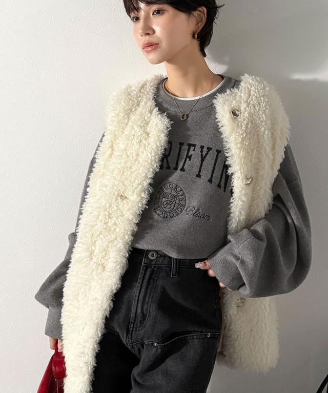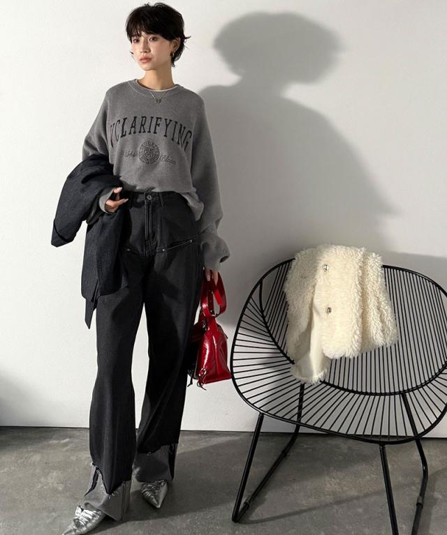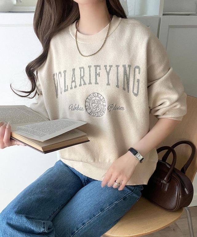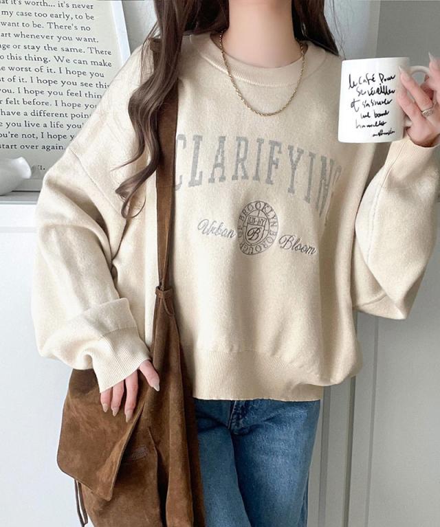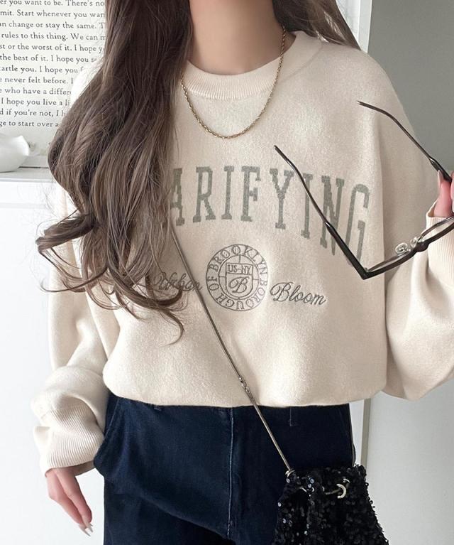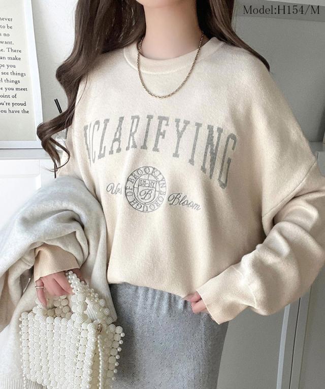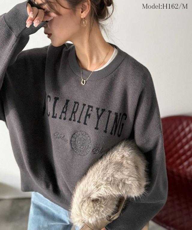 クラシカルエルフ冬新作 ニット レディース 長袖 トップス レディース プルオーバー ダブルジャガード 刺繍 カレッジロゴ ボリューム袖 ゆったり 大人カジュアル トレンド ヴィンテージ感 フェミニン 大きいサイズ 2025aw ce1260491