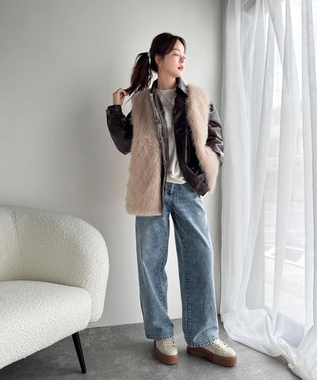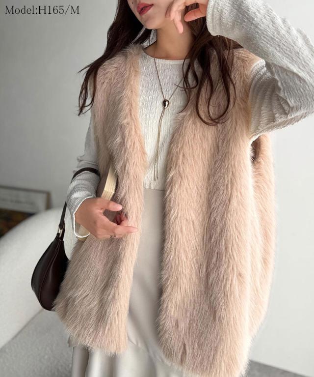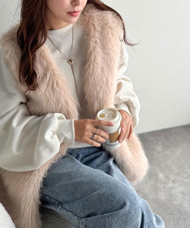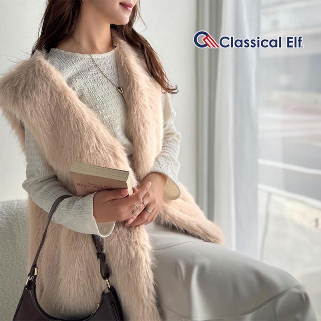 クラシカルエルフ冬新作 トップス ベスト レディース 上品 シャギーファーベスト フェイクファー ふわふわミックス トレンド ホック留め仕様 ゆとり 羽織り 高級感 カジュアル きれいめコーデ オンオフ 大きいサイズ 2025aw ce1010457
