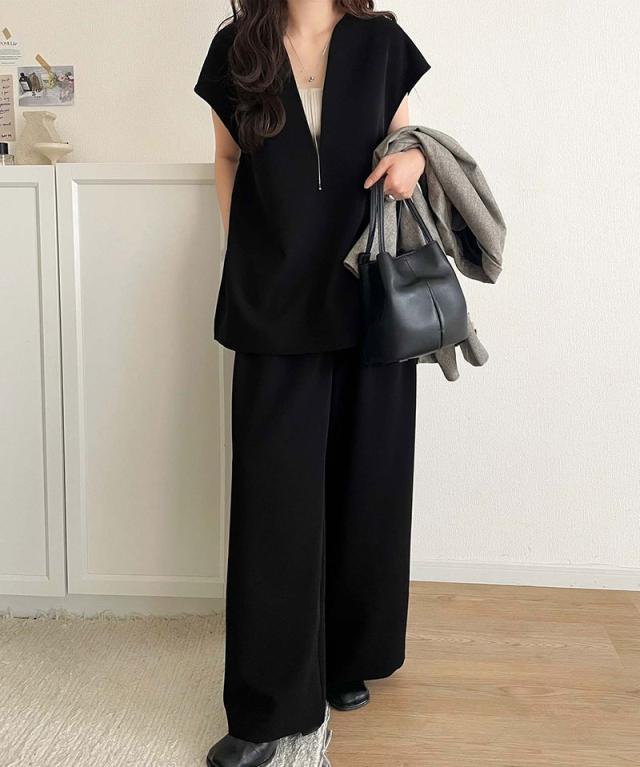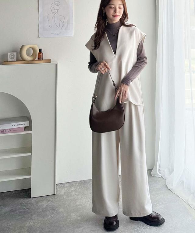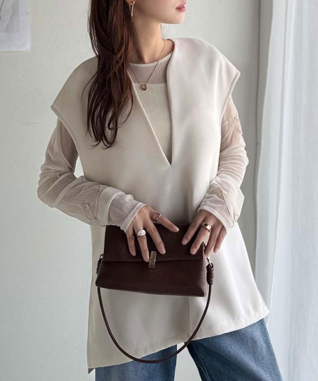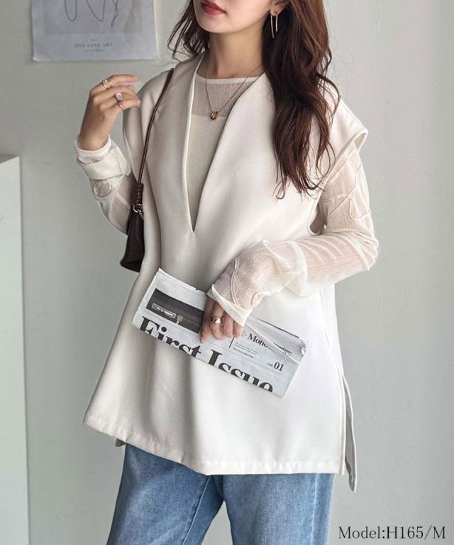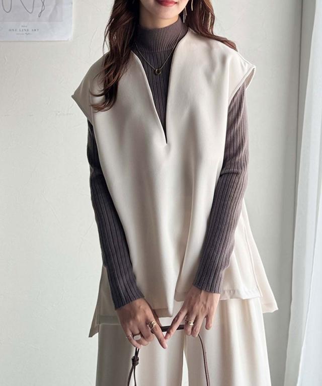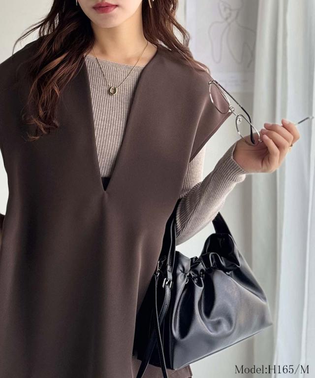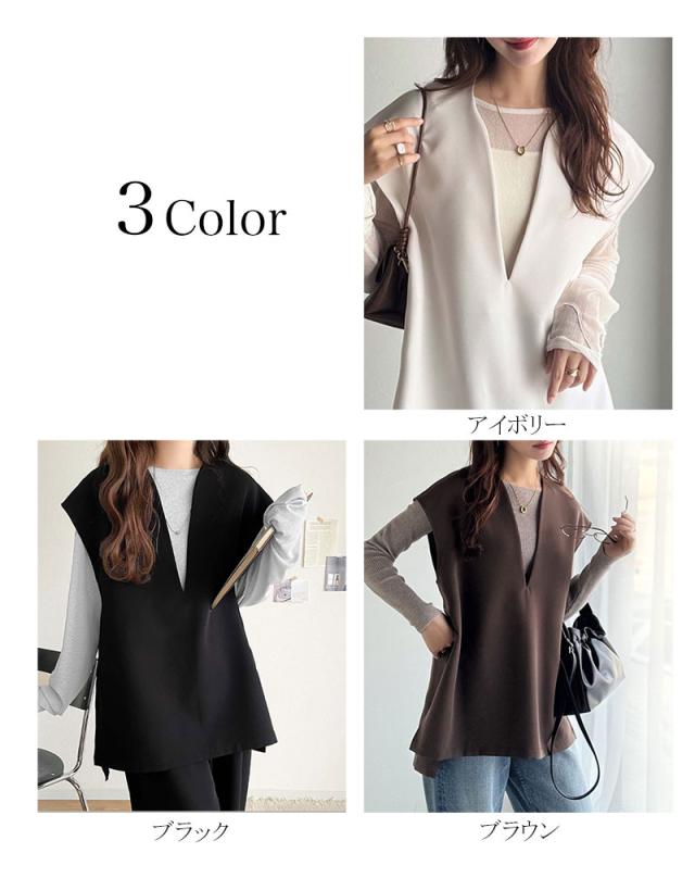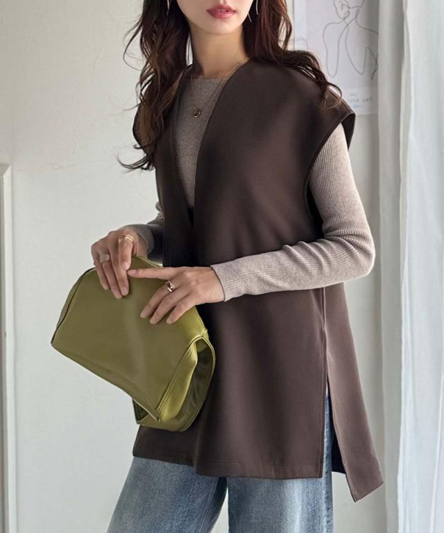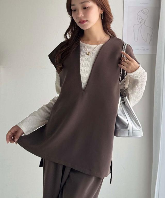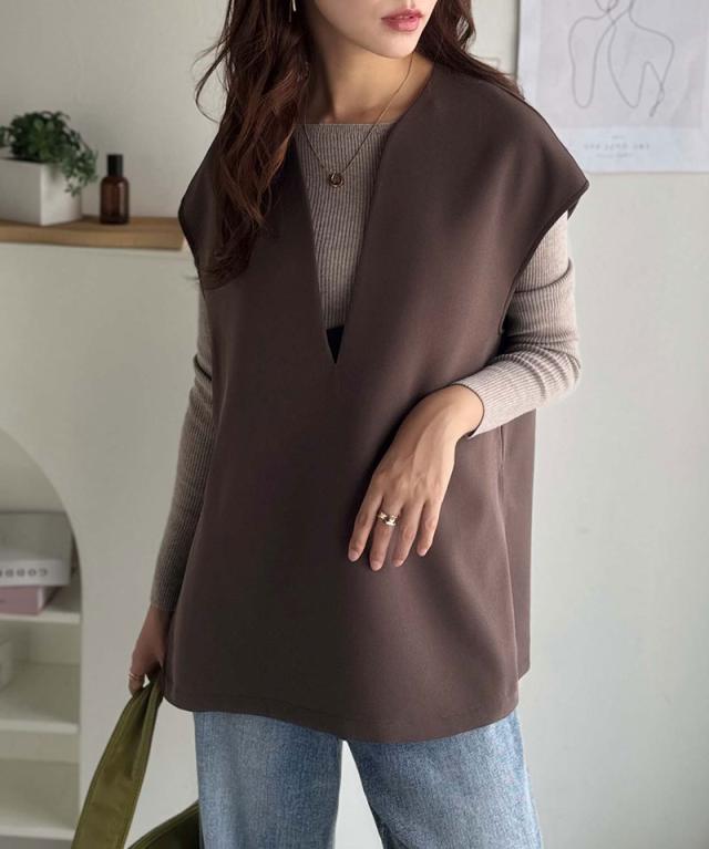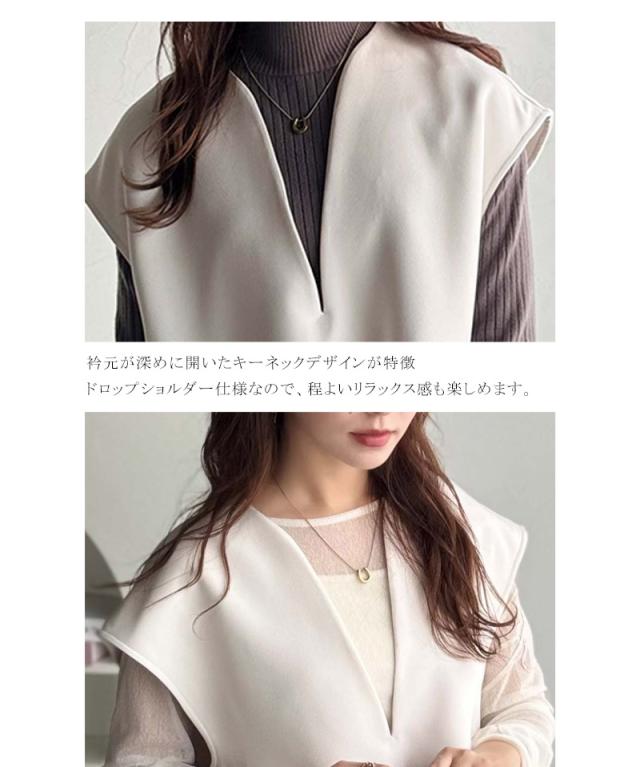 クラシカルエルフ冬新作 トップス ベスト レディース 上品 ディープキーネック きちんと感 抜け感 キレイめ カジュアル フォーマル セットアップ ドロップショルダー すっきり リラックス オンオフ 大きいサイズ 2025aw ce1070182